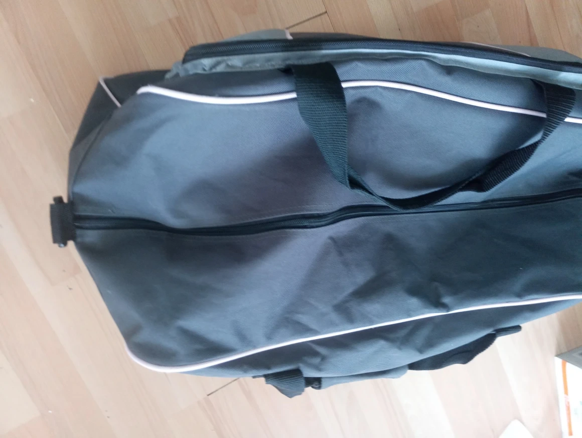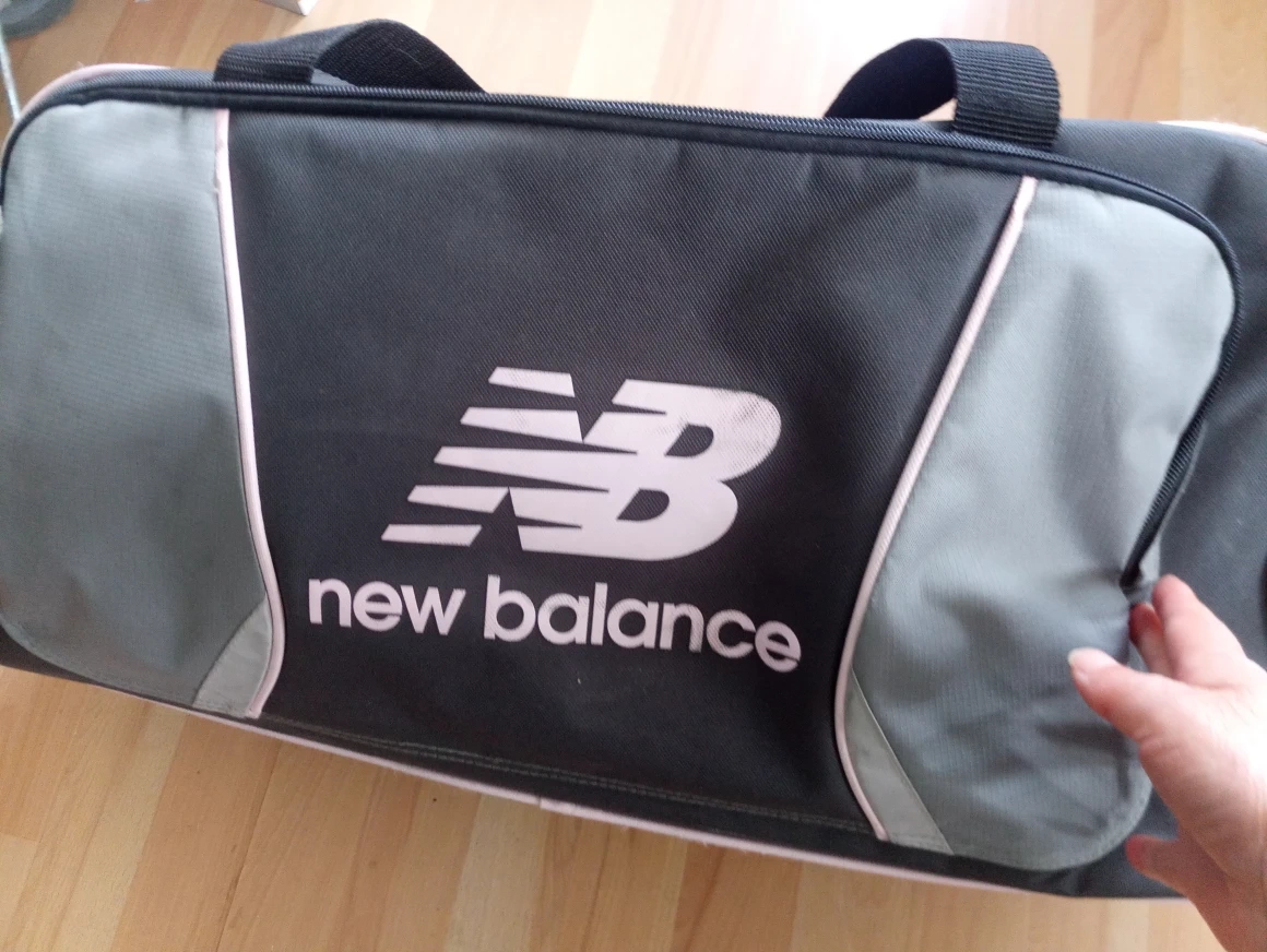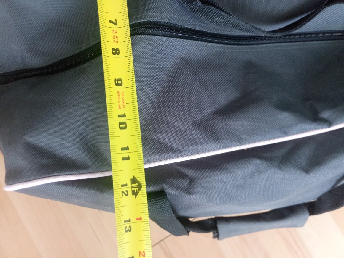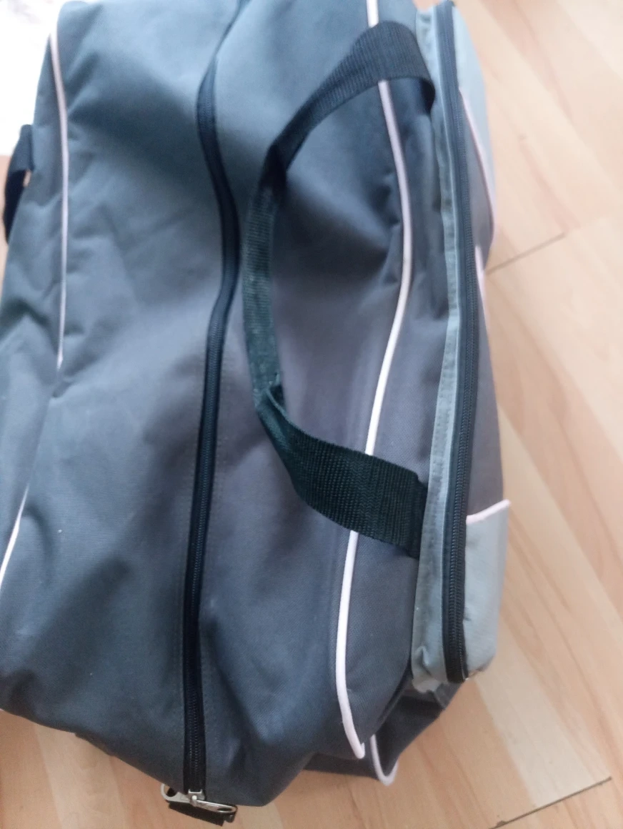 Large grey duffle bag with pink accents. Features a main zippered compartment and a top carry handle. Approximately 23 inches long.