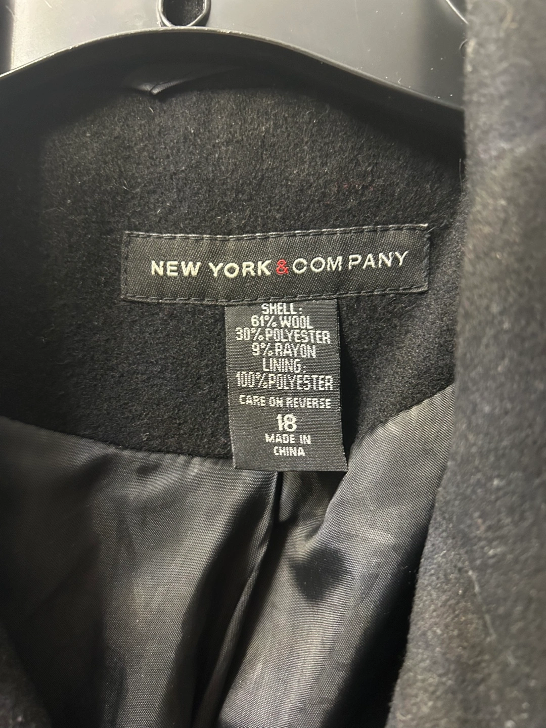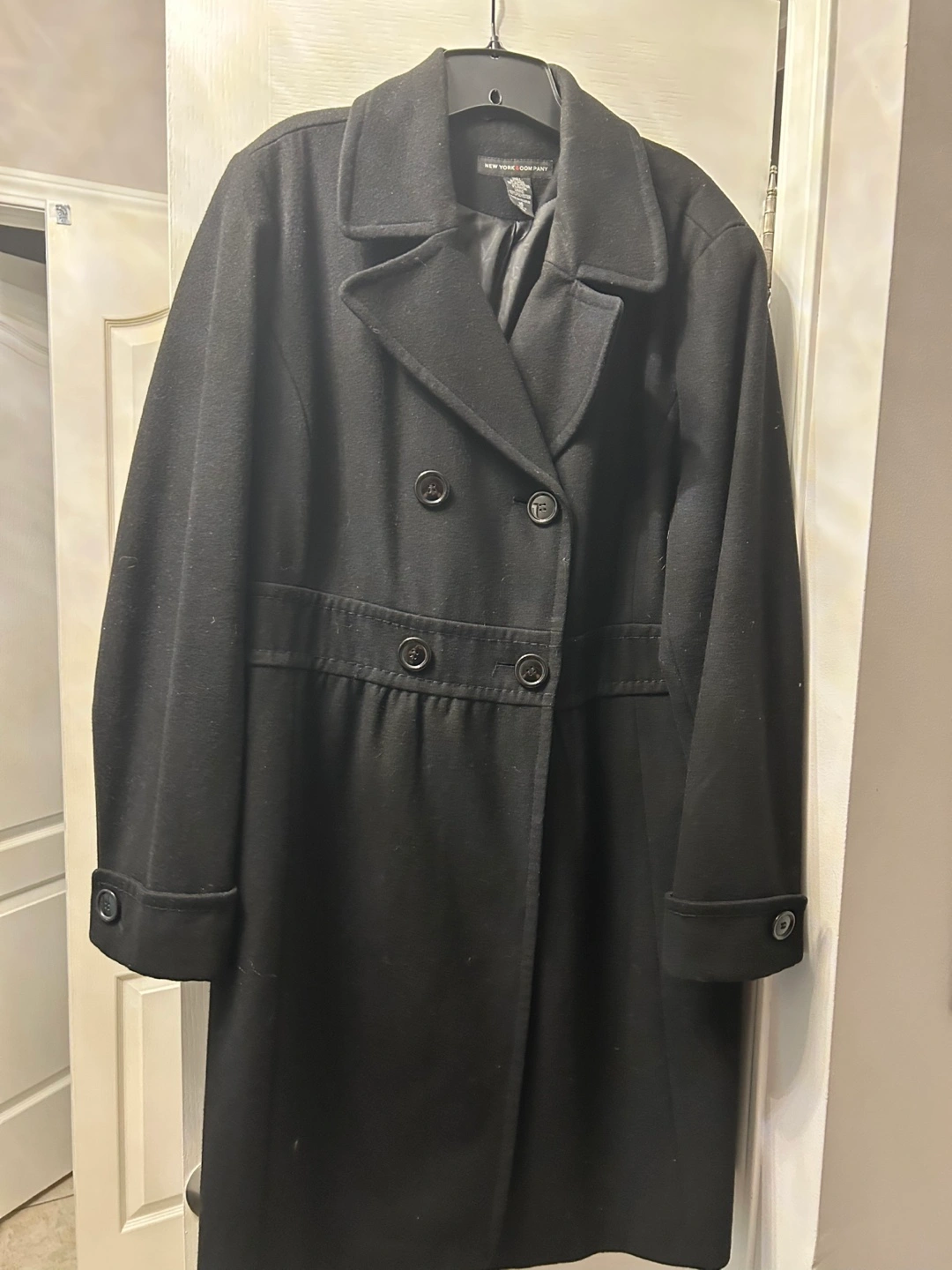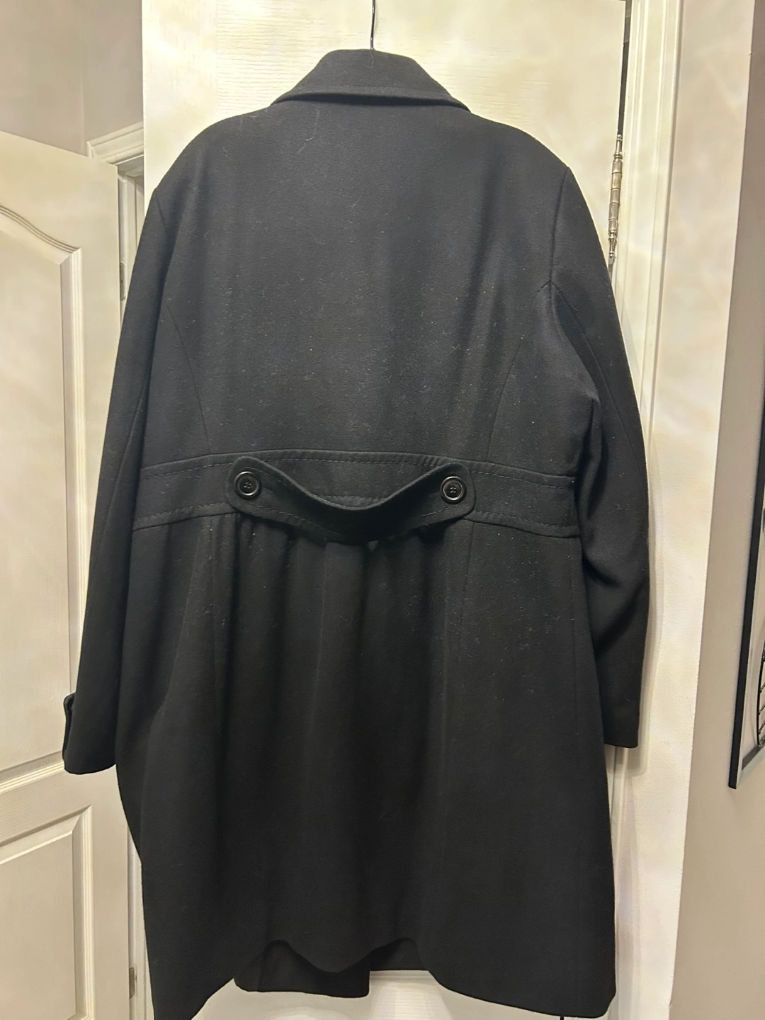 Women's black peacoat. Double-breasted with buttons. Size 18. Wool blend. Excellent condition.