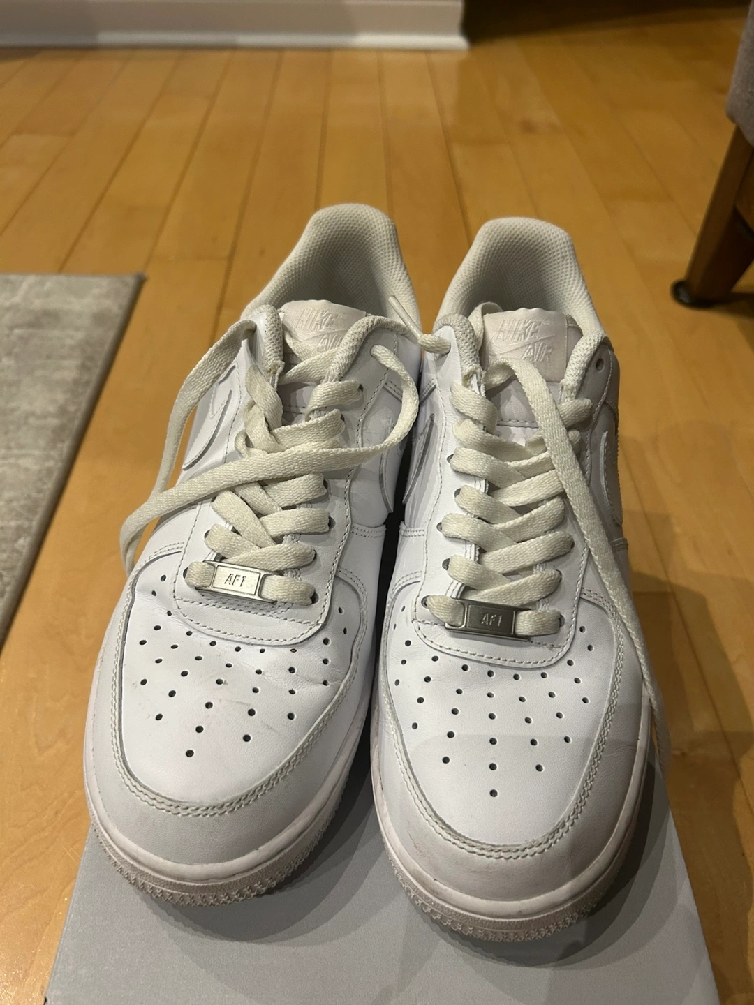 Men’s Nike Air Force 1 '07 sneakers. White leather upper. Minimal wear. Comes with original box. Size 8