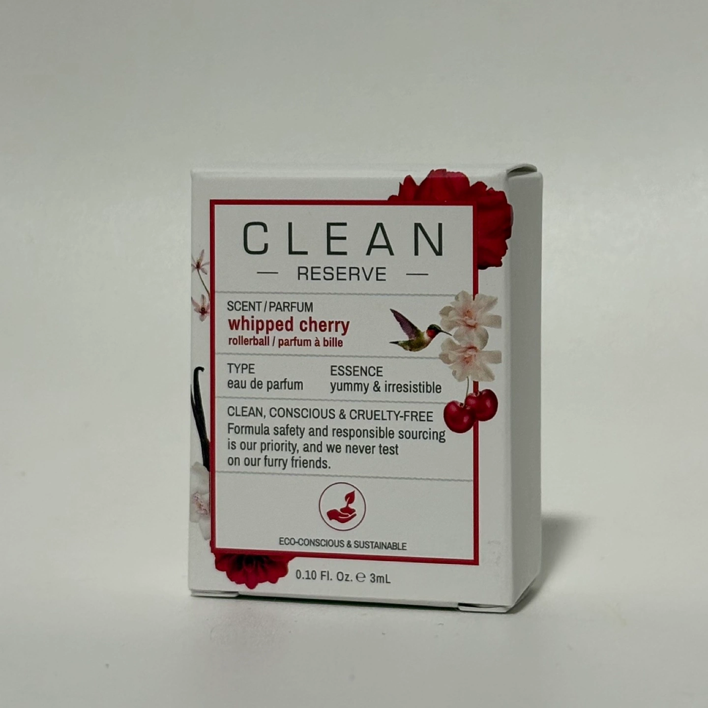 Clean Reserve eau de parfum Whipped cherry scent. Size: 3 mL rollerball Fragrance Family: Warm & Spicy Scent Type: Warm & Sweet Gourmands Key Notes: Wild Cherry, Almond Blossom, Vanilla Cream More info: https://www.sephora.com/ca/en/product/reserve-whipped-cherry-eau-de-parfum-travel-spray-P514503?skuId=2819043&icid2=products%20grid:p514503:product