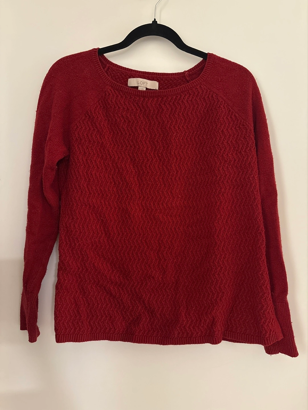 Red coloured long-sleeved sweater from the brand LOFT, size medium. Worn quite a few times so a bit of pilling but can easily be removed with a de shedding device. Similar sweaters selling for $80-$100 Smoke free home. Pick up near major Mackenzie and woodbine