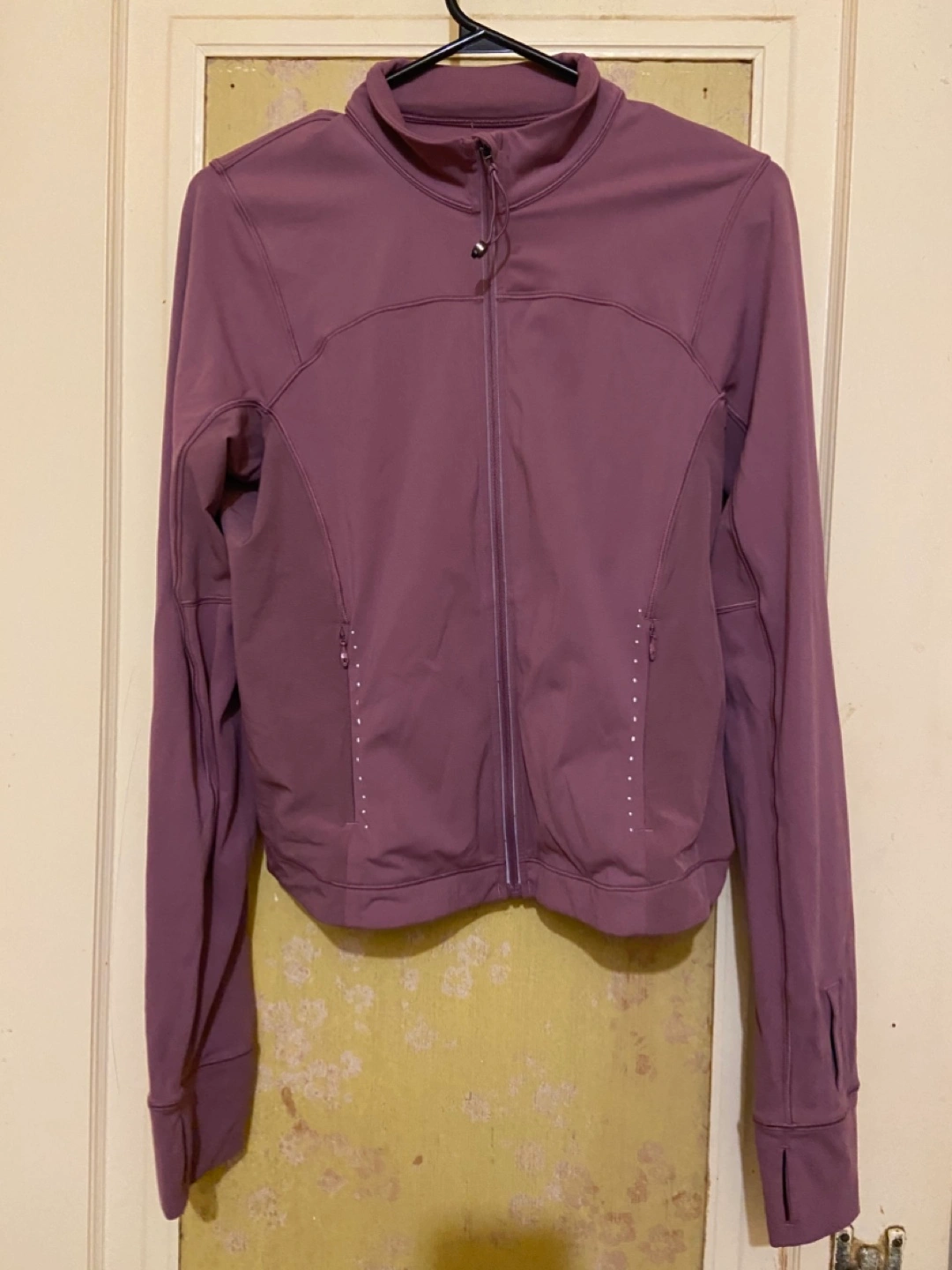 Lululemon full zip up jacket szM This is a purple Lululemon jacket, perfect for workouts or casual wear. It's in good condition, ready for a new home. Here are some details: * Brand: Lululemon * Colour: Purple * Size: M * Style: Athletic Jacket Condition- in good condition and shape. Has No rips. No stains. No wear or tear. All zippers works. Has two side zipper pockets, thumbs holes, reflective Length- 23 inches Chest - 35 inches - 36 inches Cash Payment Only No Refunds / Exchange No try ons, No trading, No holds. All purchases are Finally Sale From a Smoke Free home Fast pick up Confirmed Price-$50 Cash only Pick up- Only at TTC Station- Coxwell subway station Located In East York, Toronto This jacket is looking for a place in your wardrobe. If the ad is up, it's still available!