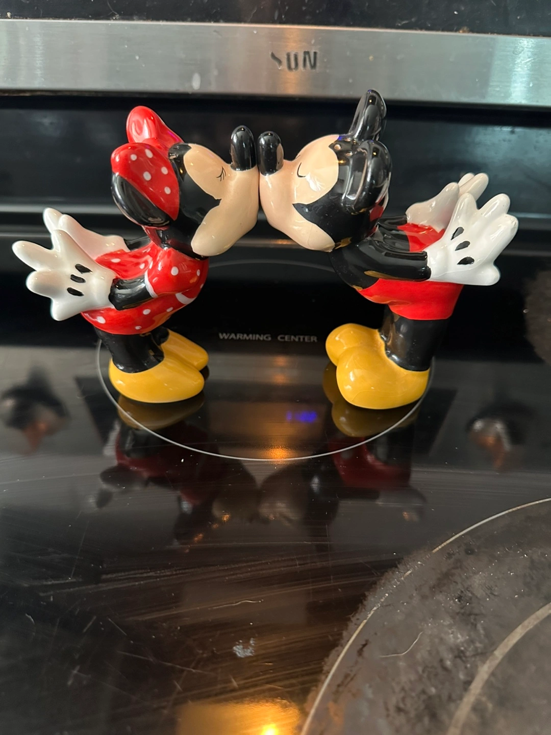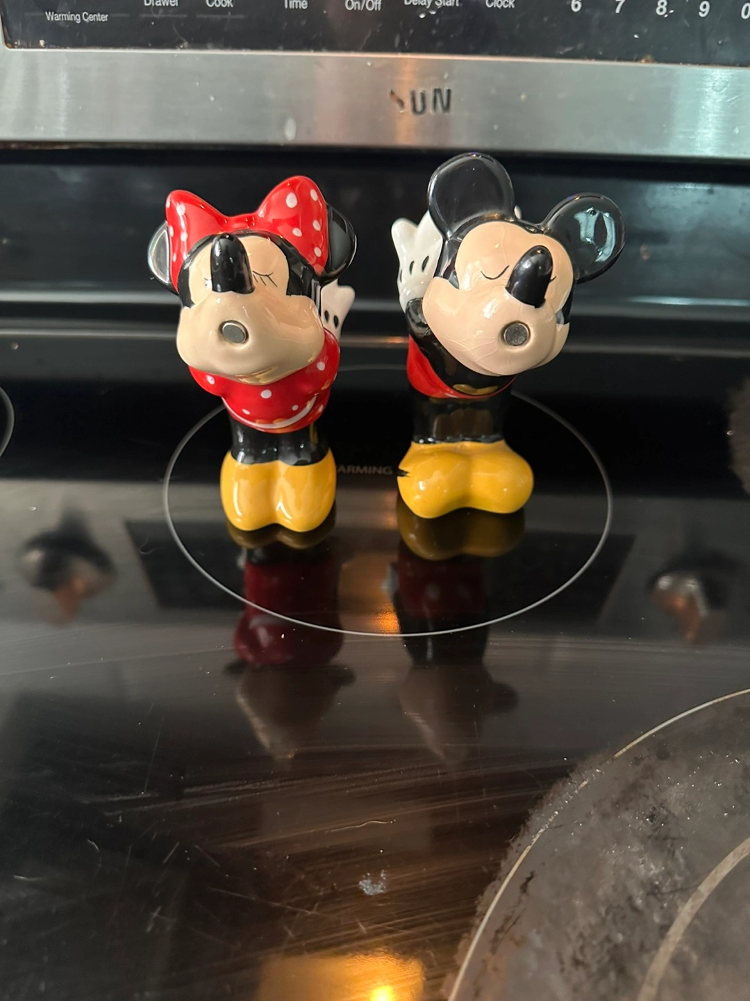 Adorable ceramic salt and pepper shakers. Minnie and Mickey Mouse. Excellent condition.