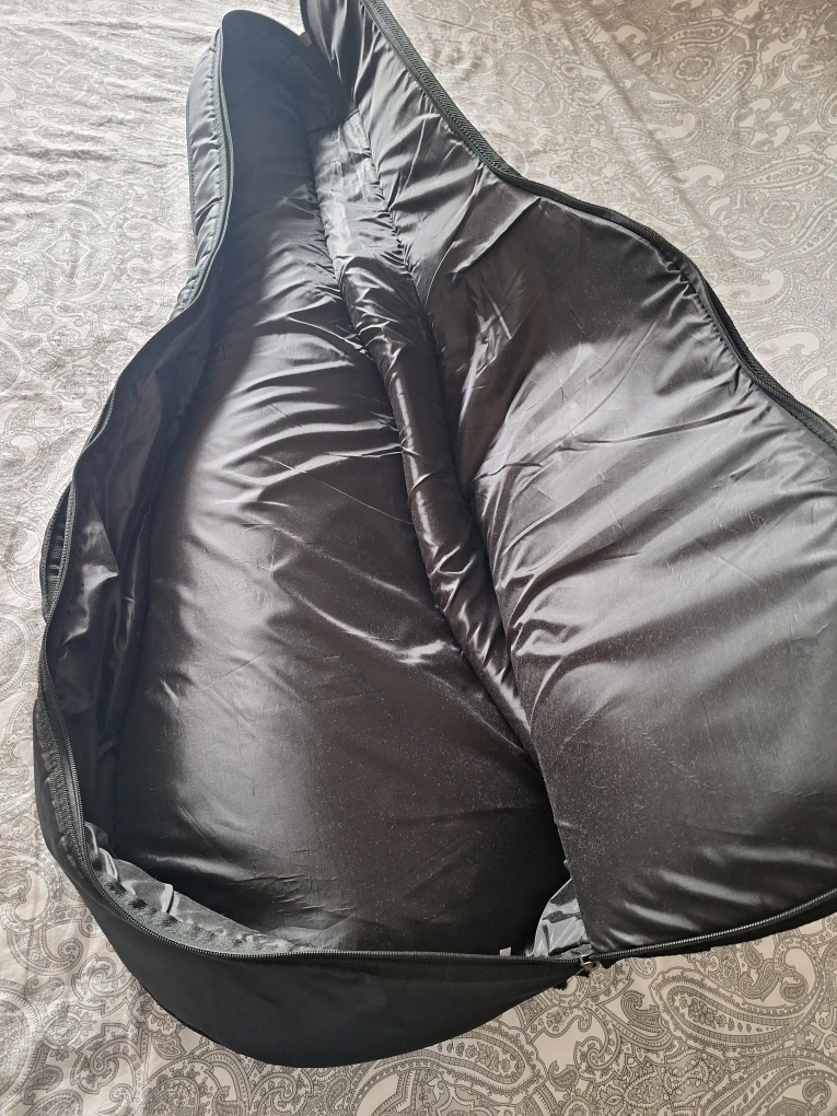 BOULDER Black padded gig bag for acoustic guitar. Features backpack straps and a small front pocket. Zipper closure. Excellent for transport and storage.