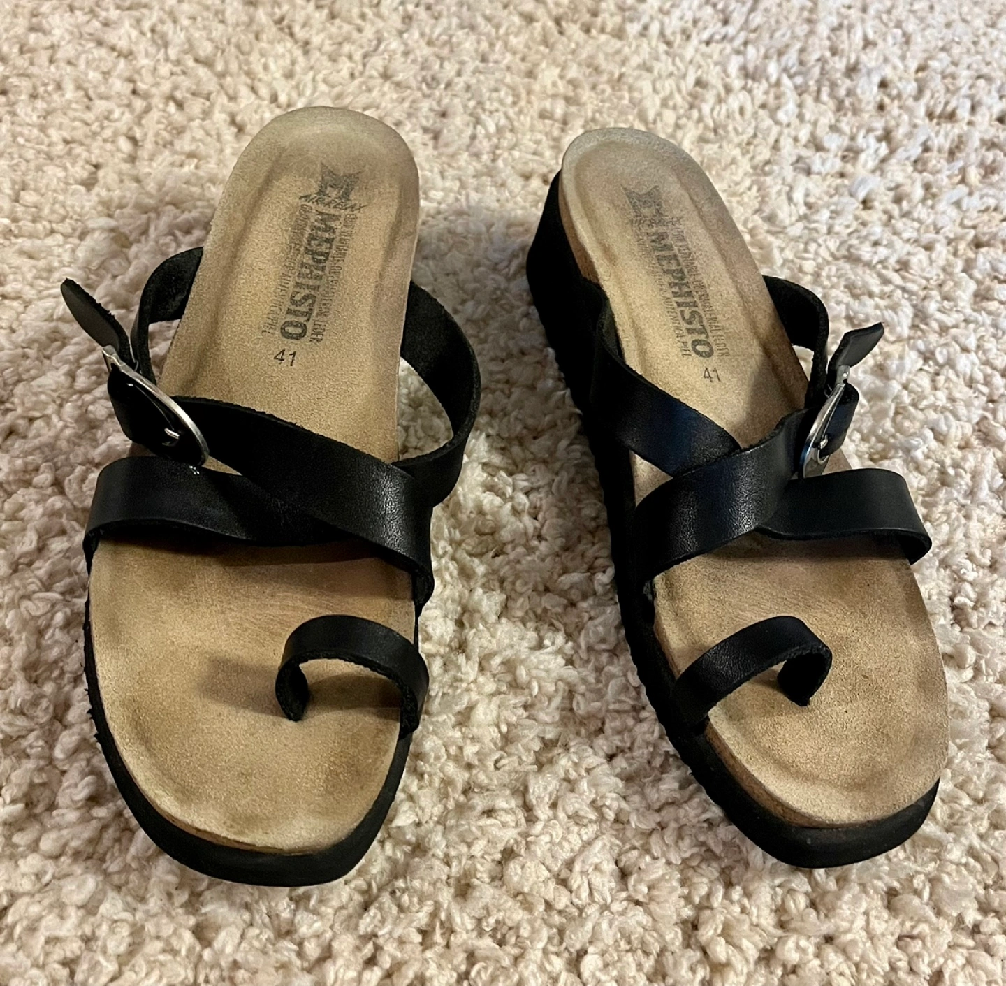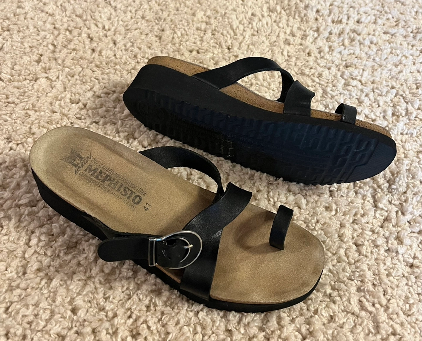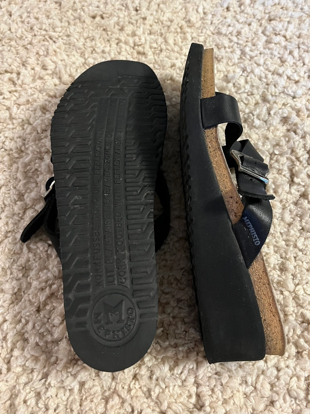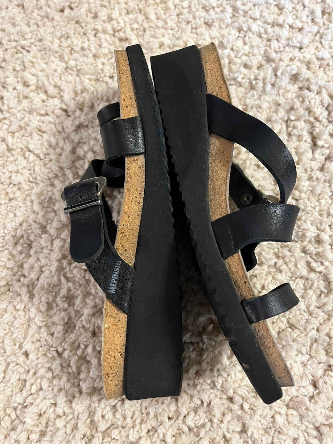 Mephisto black leather sandals Women Size 41 US 9-9.5 Cork platform wedge Great condition Pick up Bloor and Islington Etobicoke