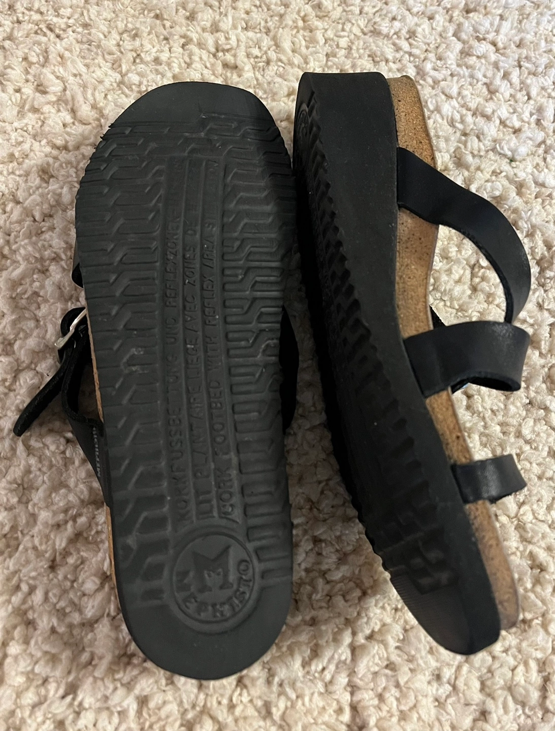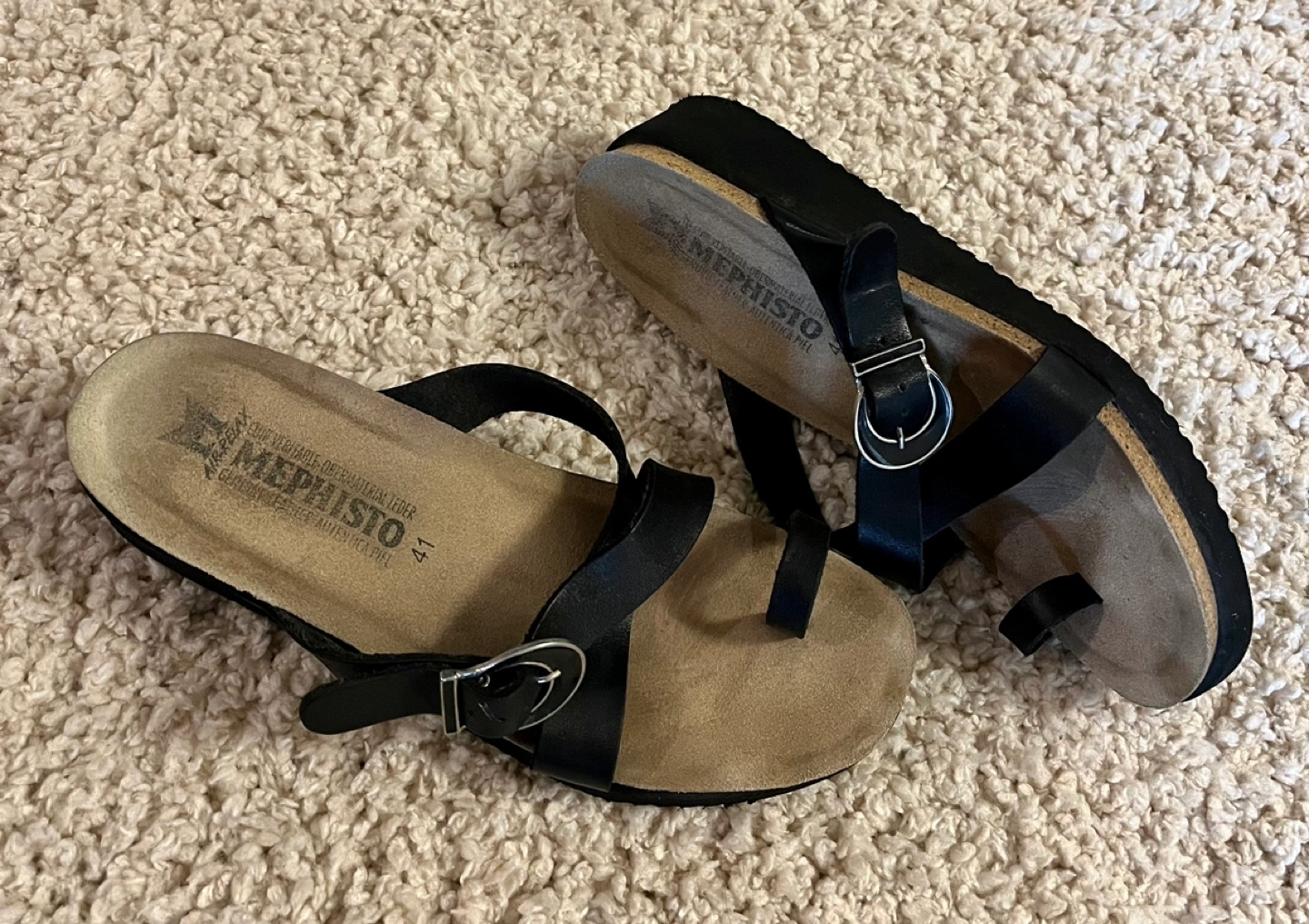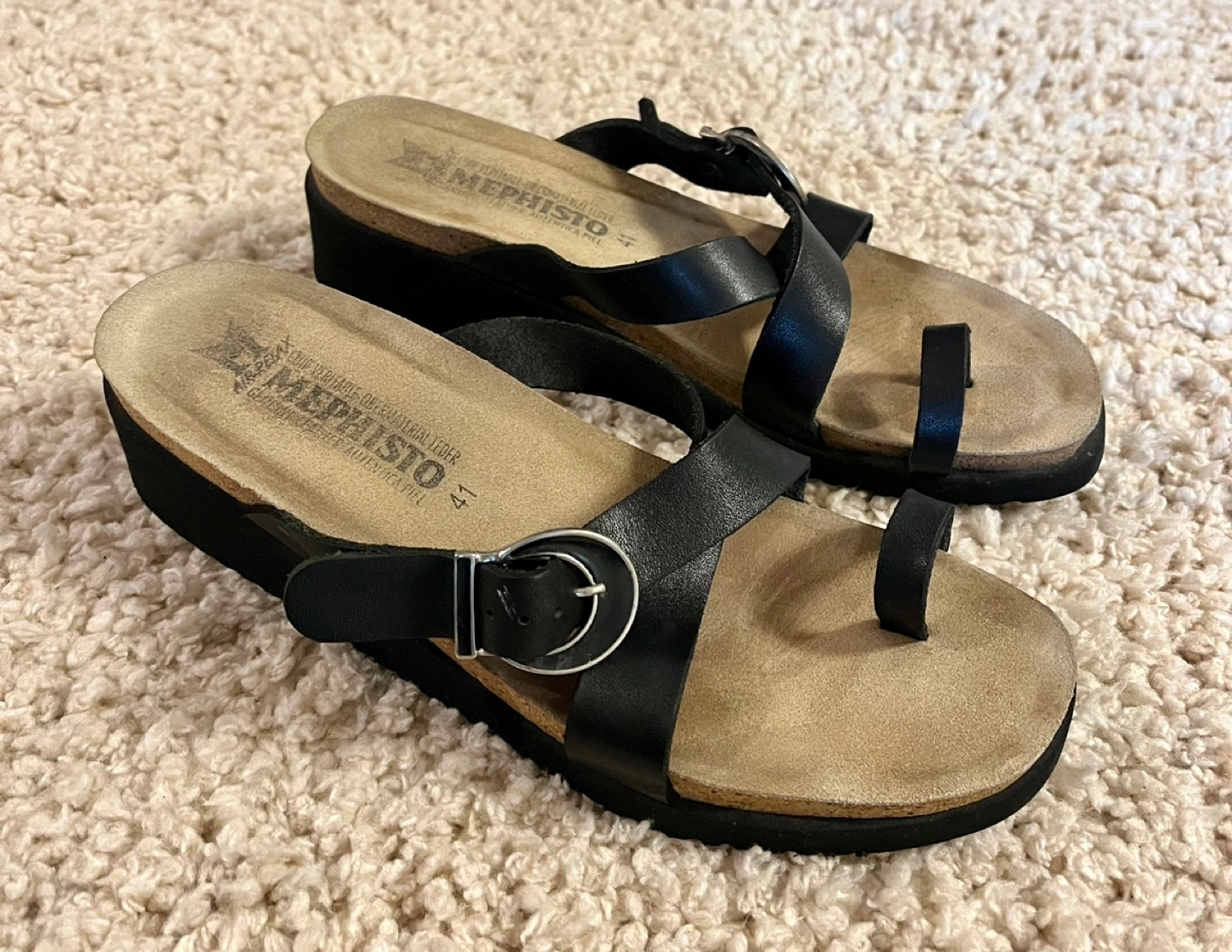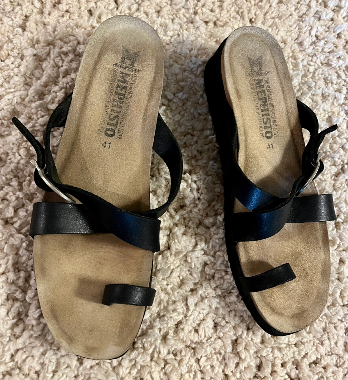 Mephisto black leather sandals Women Size 41 US 9-9.5 Cork platform wedge Great condition Pick up Bloor and Islington Etobicoke