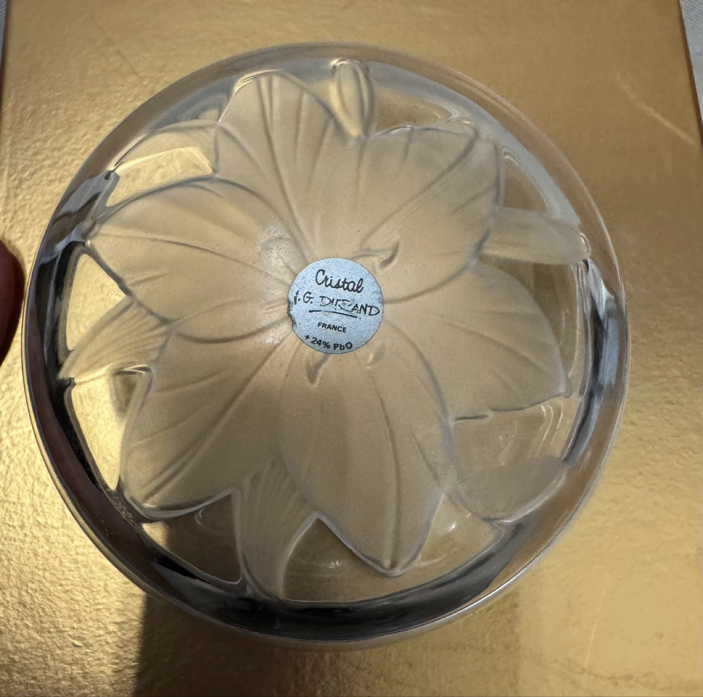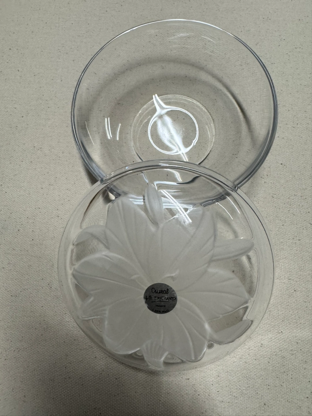 Beautiful vintage crystal covered bowl. Intricate floral design. Made in France. 24% PBO. Cash Pick up near Lawrence and Keele