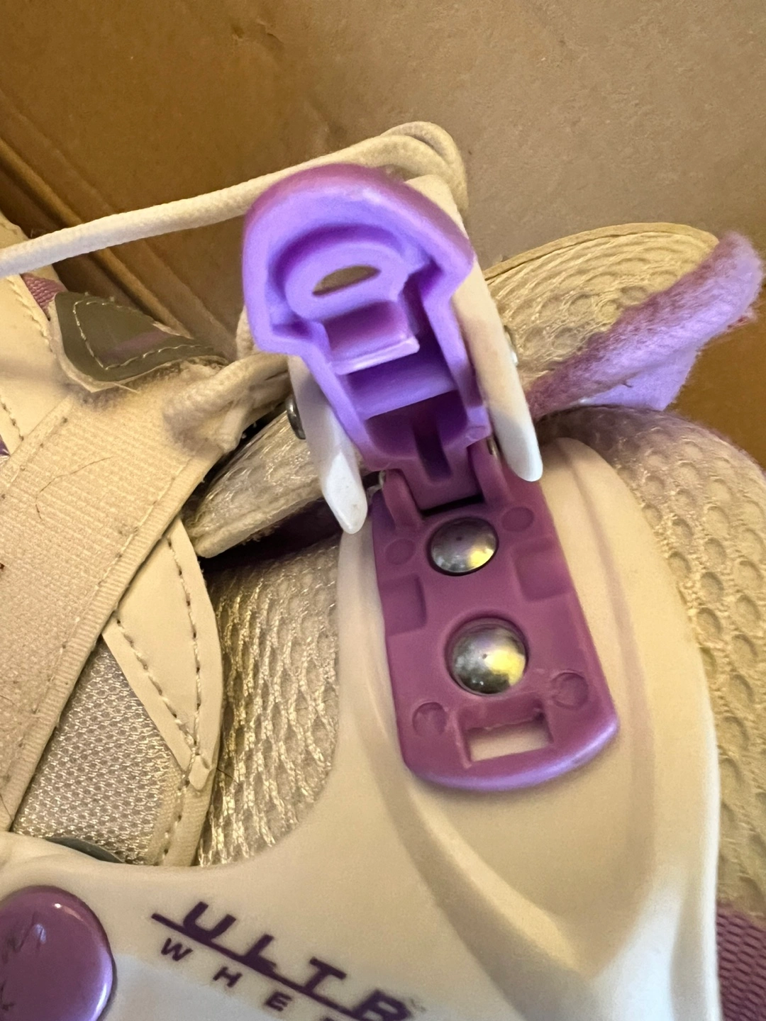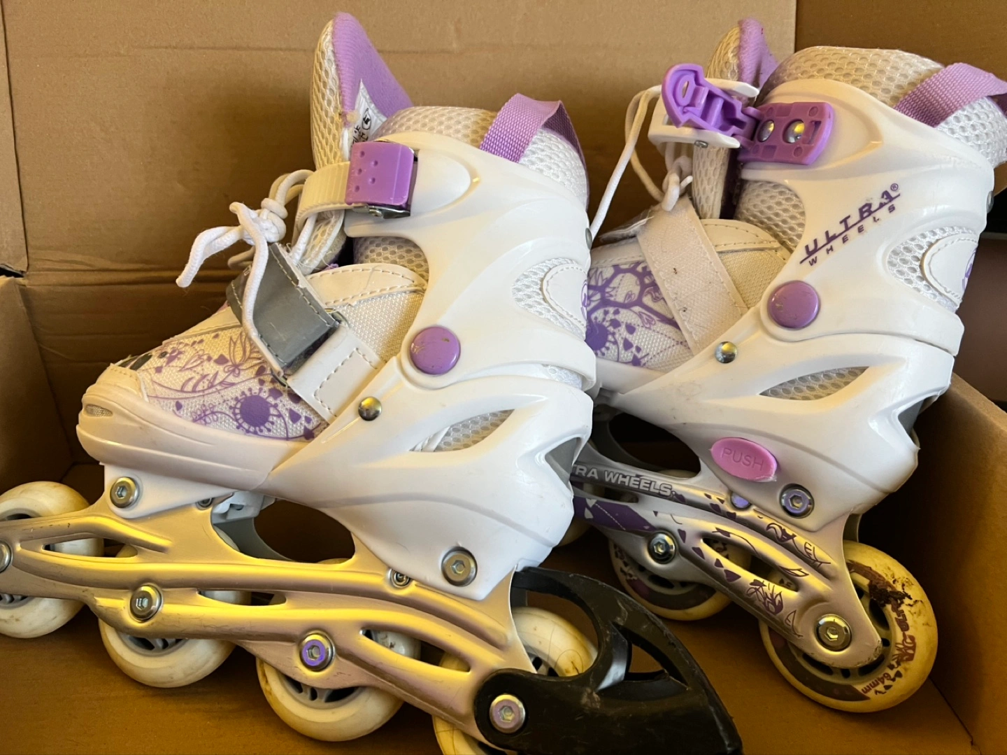 Girls inline skates. White and purple. Size 1-4. Adjustable. Used condition.