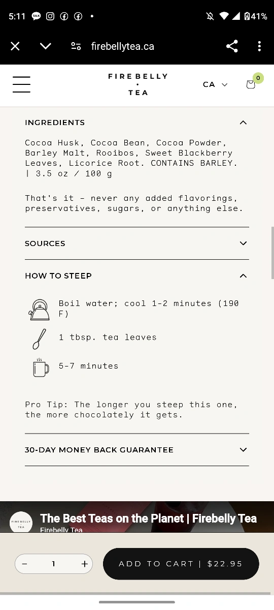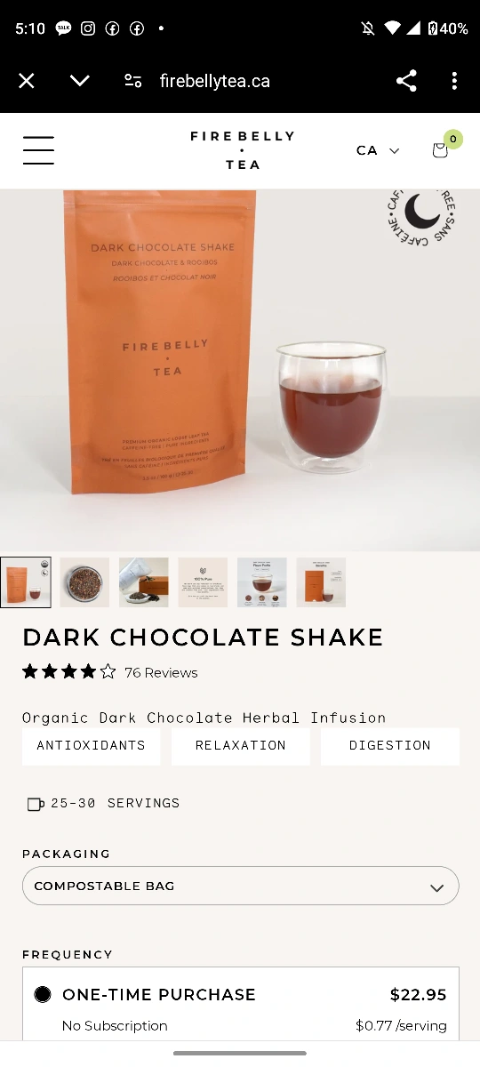 Organic dark chocolate herbal infusion. Antioxidants. Relaxation. Digestion. 25-30 servings. Caffeine-free. Proudly Canadian. purchase $23+tax https://www.firebellytea.ca/products/dark-chocolate-shake ✨From a pet-free & smoke-free home✨