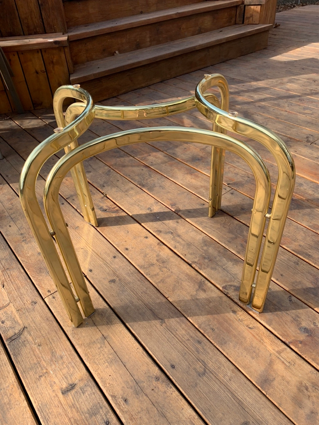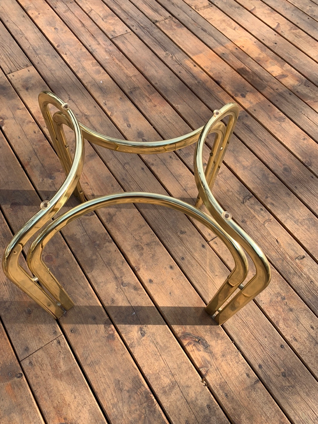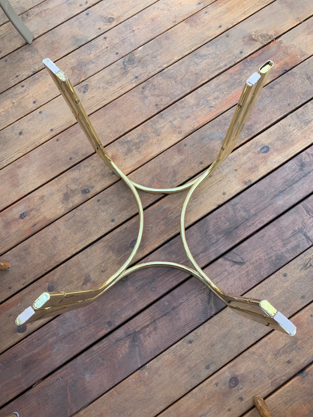 Vintage MCM gold-tone brass plating aluminum coffee table base. It is missing the glass but does have the suction cups for a piece of replacement glass. It is in very good condition with just one flaw on one of the bottom of the legs but it does not interfere with its integrity. It would make for a great base for a coffee table or end table. Can deliver in the GTA for $7 more. Cash only please.