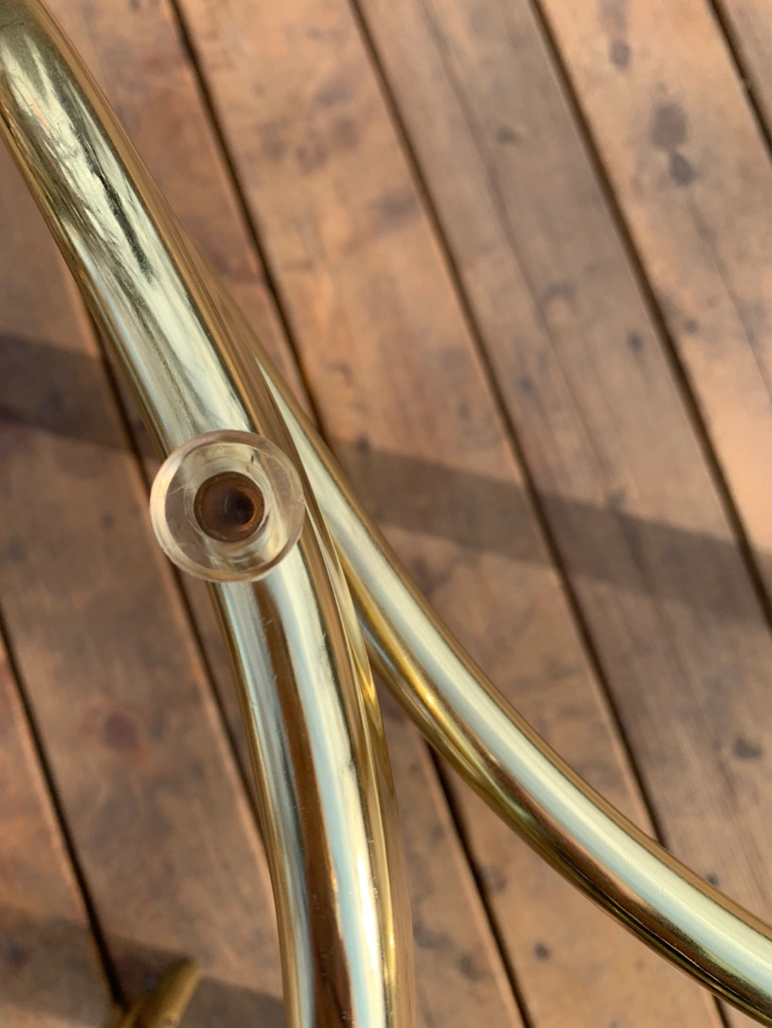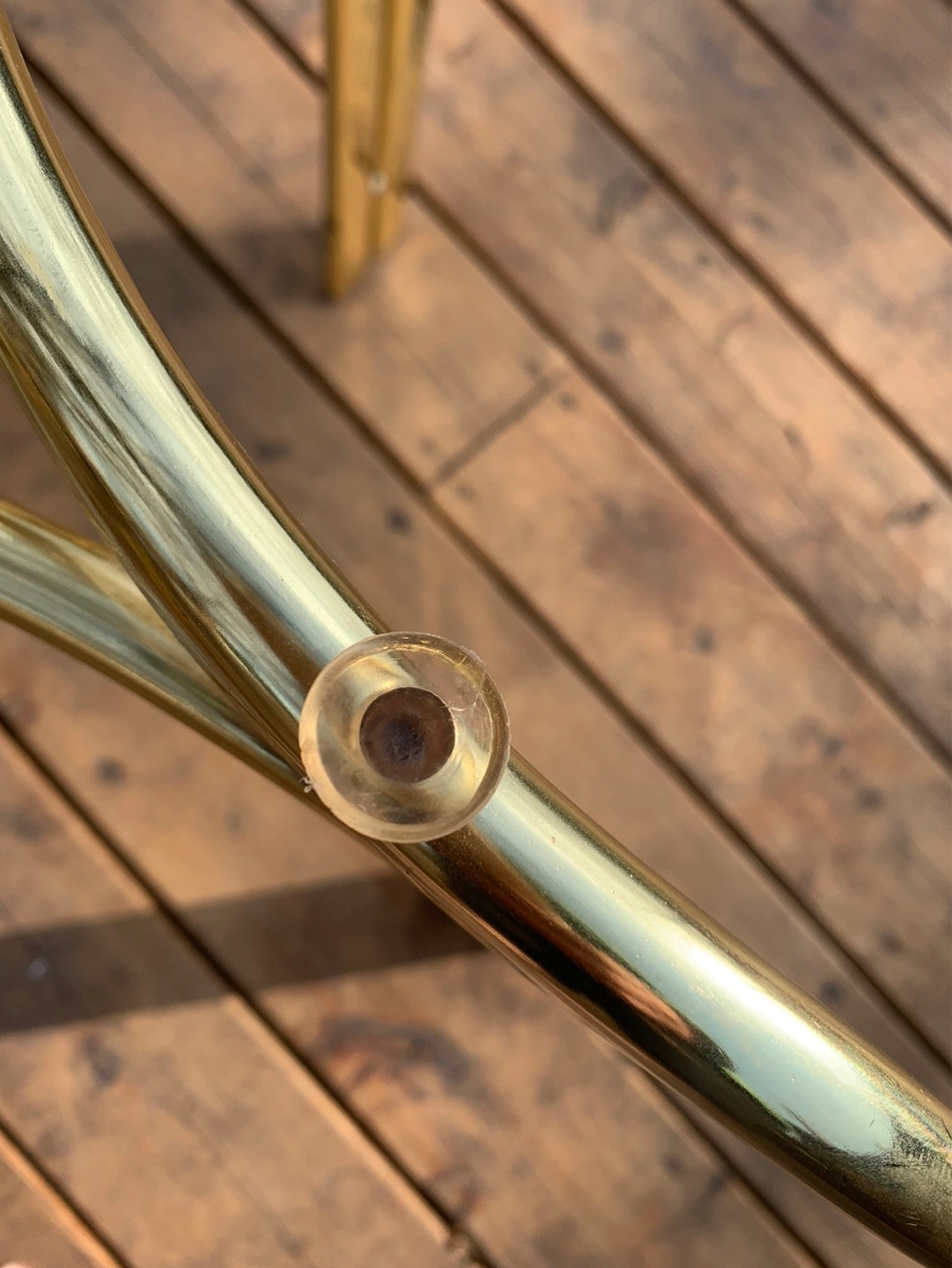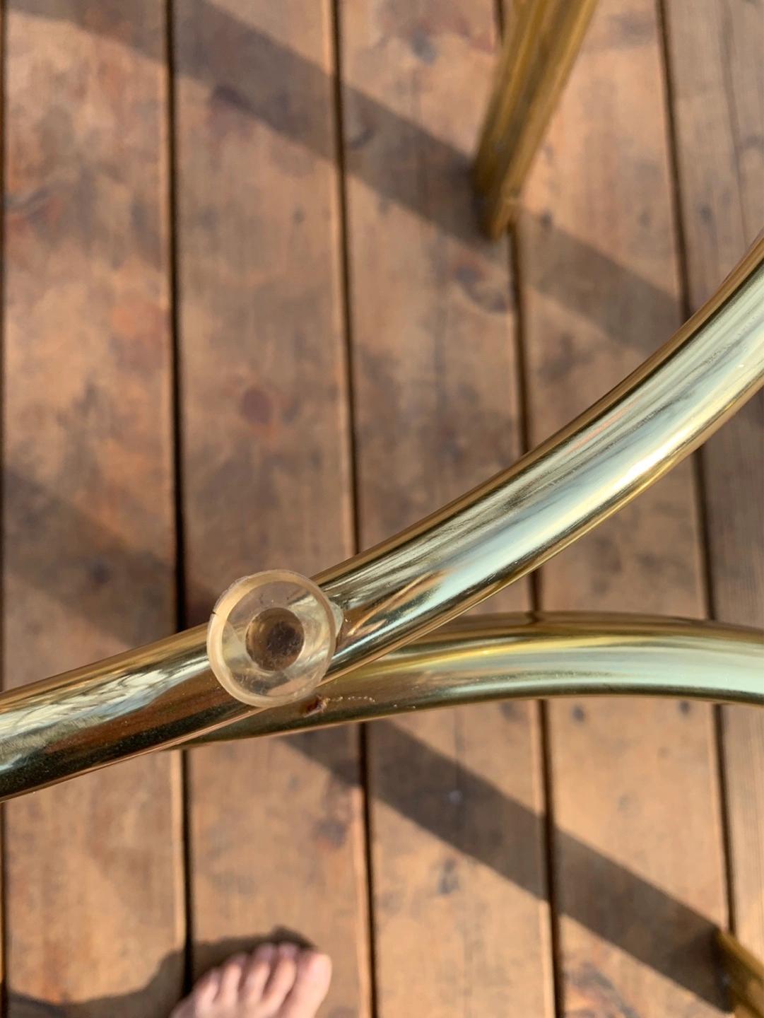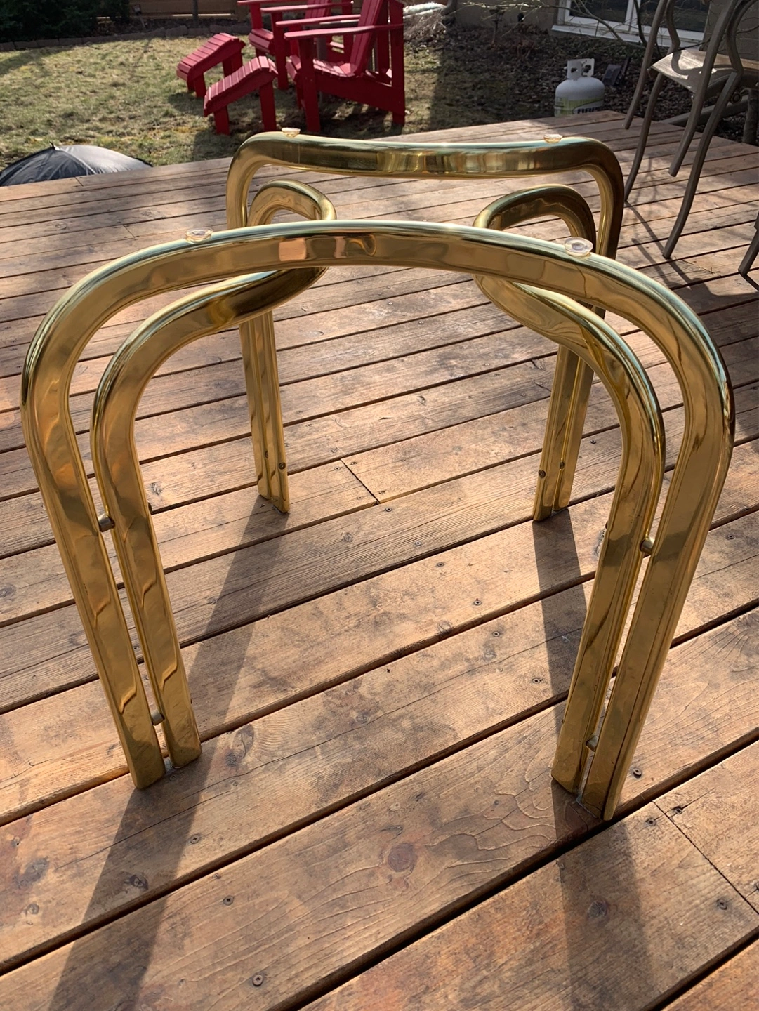 Vintage MCM gold-tone brass plating aluminum coffee table base. It is missing the glass but does have the suction cups for a piece of replacement glass. It is in very good condition with just one flaw on one of the bottom of the legs but it does not interfere with its integrity. It would make for a great base for a coffee table or end table. Can deliver in the GTA for $7 more. Cash only please.