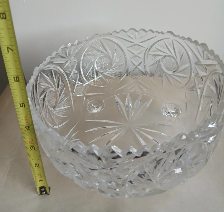 *Cash and pick up ONLY at location shown on ad. No trades. Non-negotiable. Beautiful Footed crystal bowl. Features intricate cut glass detailing. Three small feet. Approximately 8 inches in diameter.