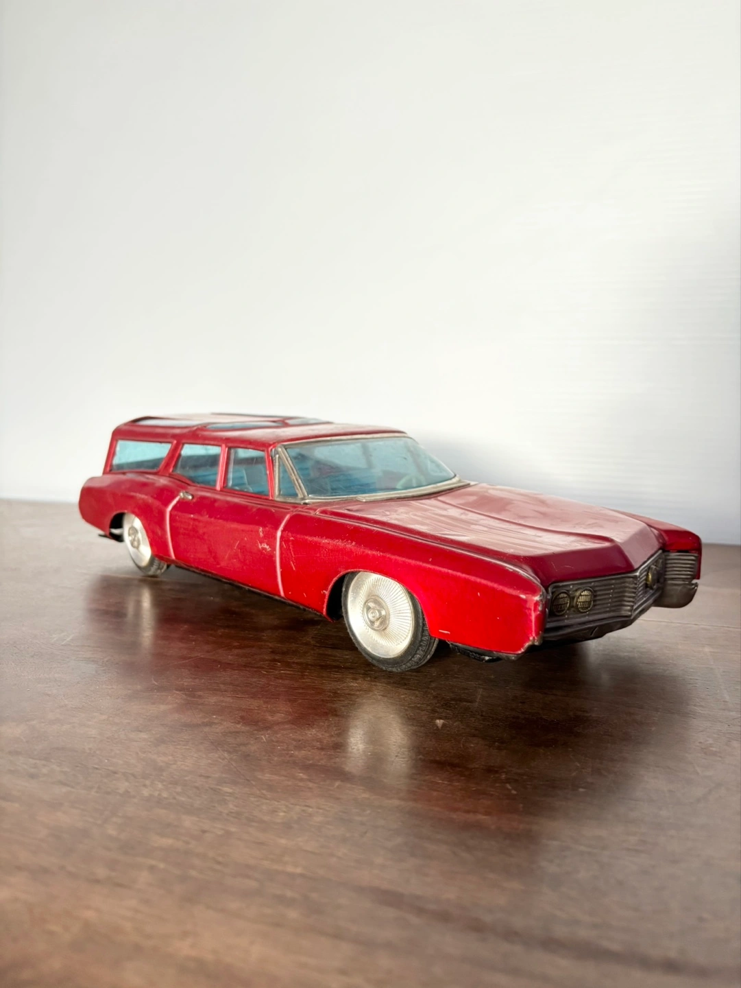 A Vintage Asakusa tin toy Buick Riviera. Missing some pieces and shows some wear. Roughly 15” long. Made in japan