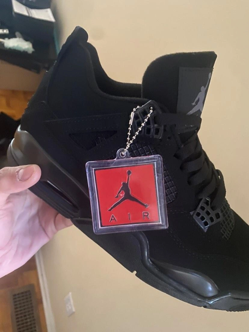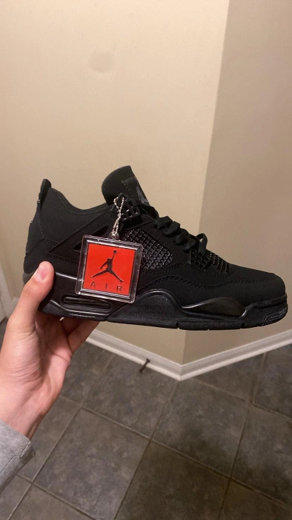 Men's Air Jordan 4 Retro sneakers. All black colourway. Size 9.5 available never worn new batch many in stock.