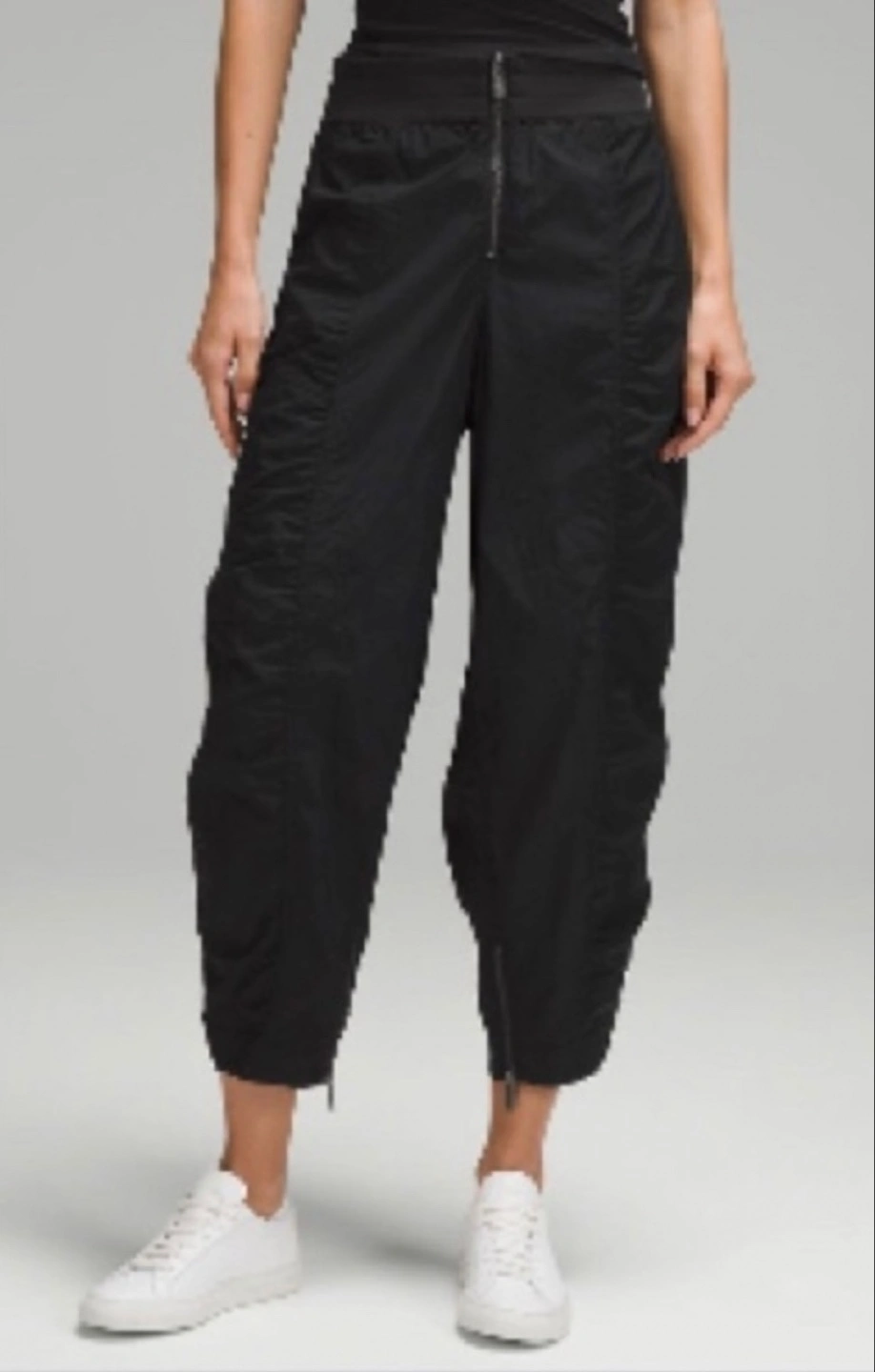 Lululemon Pants Front-Zip Mid-Rise Ruched Crop New with Tags. Water resistant, lightweight and wind proof. Cropped length with zippers at the ankles and side zipper on leg pockets.