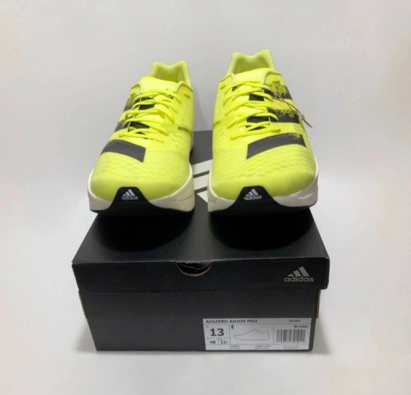 Adidas - Adizero Adios Pro - Running Shoes - Size 13 - Men's - Brand New + Original Packaging / Box!! * Item available if you see this ad * HIGHLIGHTS CELERMESH An upper that provides flexibility, breathability and lightweight support. MIDSOLE Carbon infused rods, a carbon heel plate and Lightstrike Pro foam deliver a smooth, snappy transition and optimized cushioning. LIGHTSTRIKE PRO Super light foam that stores and returns more energy than ever before. Cushioning with minimal weight. ENERGYRODS Carbon infused rods designed to deliver an anatomically driven transition that limits energy loss. ADIZERO ADIOS PRO RUNNING SHOES ADIZERO ADIOS PRO. WTFAST. Forget what you knew about ADIZERO ADIOS. This world record-breaking shoe has been totally re-imagined. Together with some of our fastest running athletes, like Joyciline Jepkosgei and Rhonex Kipruto, we've co-created something that's challenging everything we knew about bending stiffness, energy return, mass reduction and design geometry to optimize running economy for faster, longer runs. Introducing ADIZERO ADIOS PRO. Not just fast, WTFAST. SPECIFICATIONS Regular fit Lace closure Engineered mesh upper Light, responsive running shoes Lightstrike cushioning for a fast, snappy feel Weight: 7.9 ounces Midsole drop: 8.5 mm (heel: 39 mm / forefoot: 30.5 mm) Imported Product code: H67504 (Colour: Solar Yellow / Core Black / Cloud White) Product code: G55661 (Colour: Signal Pink / Cloud White / Shock Pink) Listing photos show the new and actual condition of these items! Please, see listing pictures for the exact product you will receive Where to meet? - CF Toronto Eaton Centre (Dundas St W & Yonge St) - Yorkdale Shopping Centre / Mall (Main Entrance Facing Dufferin St) * Any of those spots Thank you for looking!