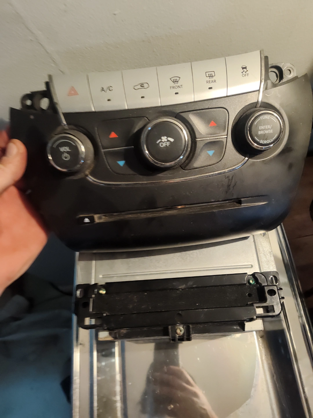 Used Dodge Journey radio and climate control bezel. Includes the radio unit. Some wear and tear. Part number 1RK681X9AD. Sold as is. supports u-connect 4. Originally in 2016 SE Plus.