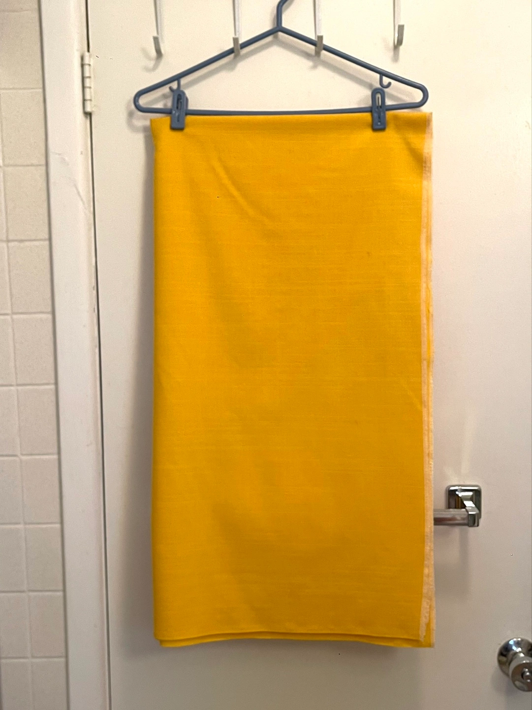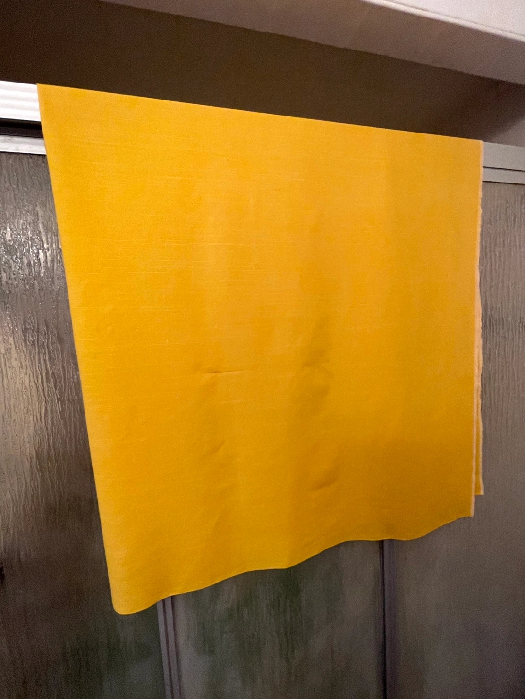 Beautiful mustard yellow/orange fabric. Great for quilting, sewing, or crafting projects. Not sure of the material but likely a poly/cotton blend as it washes and dries with little wrinkling. Pre-washed in like new condition. 60 x 64". Can also be used as is as a tablecloth.