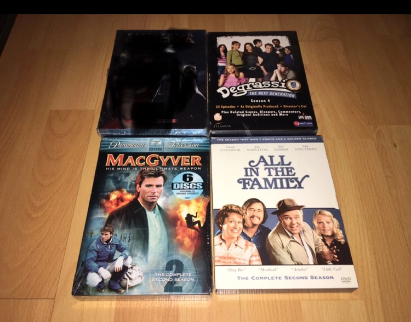 Brand new and sealed season DVDs. Second season of MacGyver and All in the Family. And Degrassi: The Next Generation season four. Selling each season for $10.