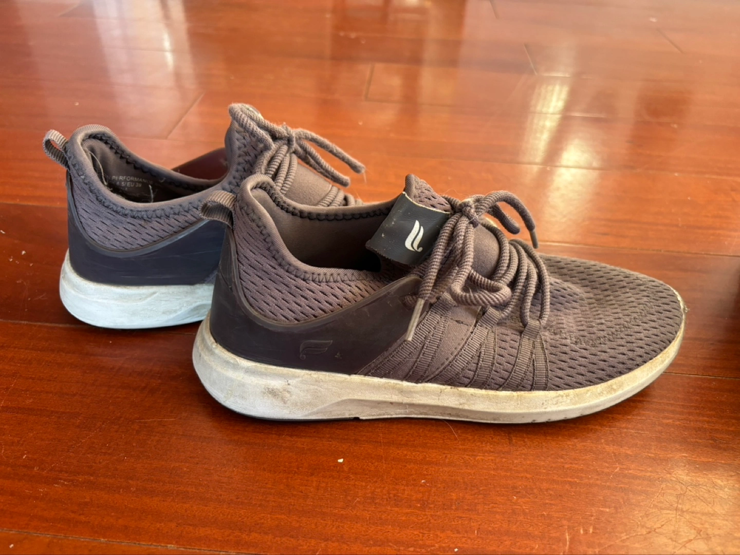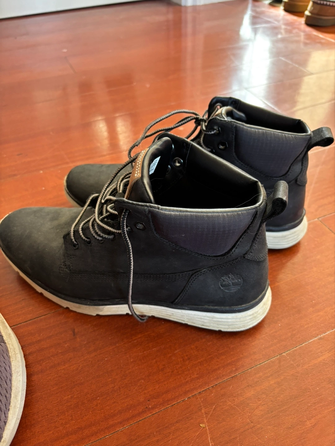 Selling a pair of gray running shoes and a pair of black Timberland boots. Both pairs show some wear. Great for everyday use or casual outings. Sizes are 8 & 8.5