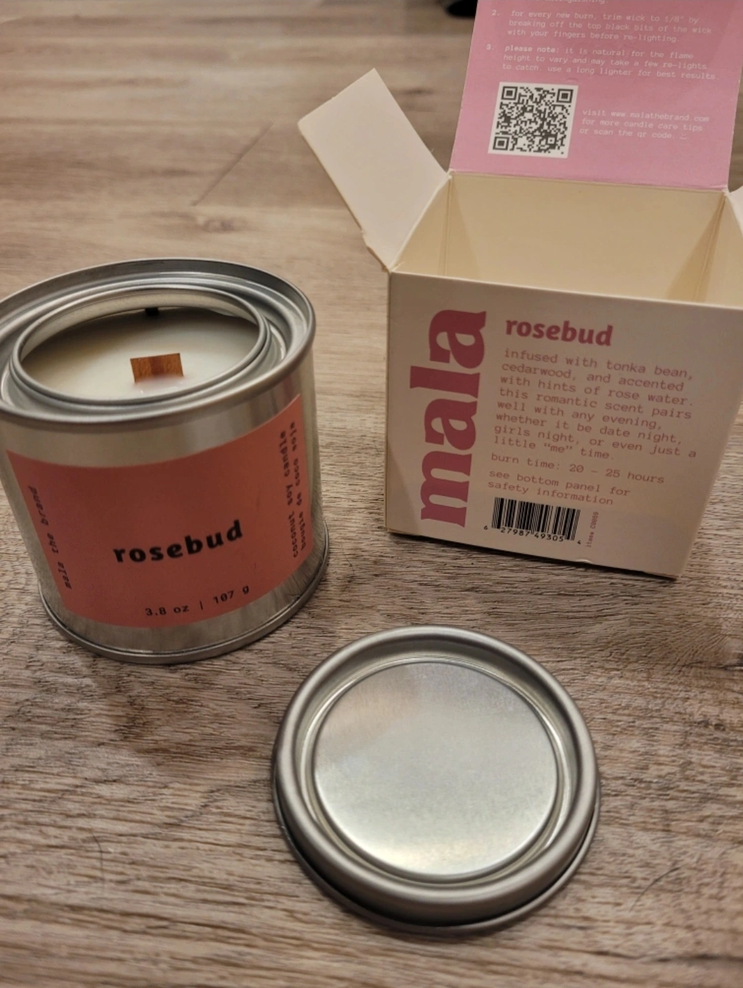 Brand new, removed from the box for photos. Cream, rose and cedarwood scented coconut soy candle. 20-25 hour burn time. 3.8 oz | 107 g. One tree planted with every candle.