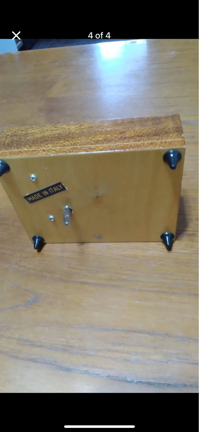 Adorable vintage Hummel music box. Features a charming illustration of a girl with flowers. Made in Italy. Plays a tune when wound. Small wooden box with an inlaid design. Great collectible or gift.