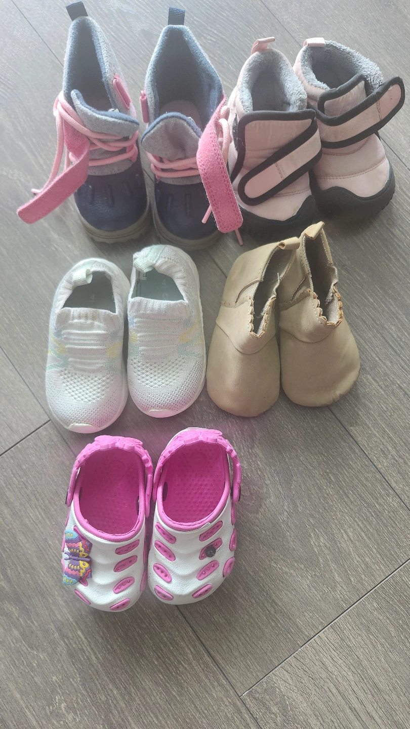 Bundle includes 5 pairs of baby shoes. Different styles and colours. Sizes vary. Good used condition.