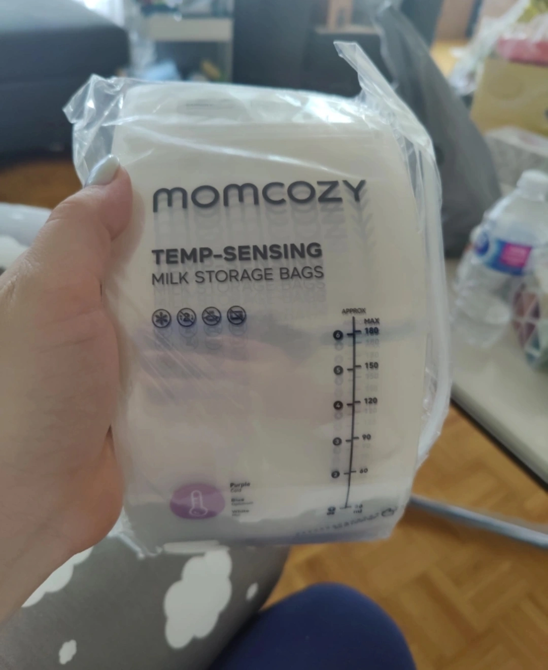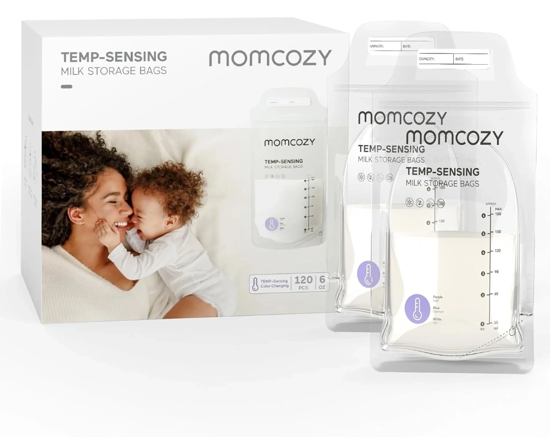 New, unopened box of Momcozy temp-sensing milk storage bags. Great for storing breast milk. Colour-changing feature for temperature monitoring. Quantity: 60 count, 6 oz breast milk storage bags with temperature-sensing strips. Price is Firm! 30 bags for $10 each All 60 bags for $15