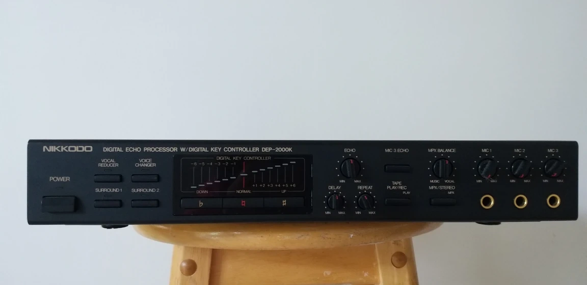 Vintage Nikkodo DEP-2000K digital echo processor with digital key controller. Made in Japan. Features vocal reducer, vocal changer, surround, and more. Includes original owner's manual. Good cosmetic condition.