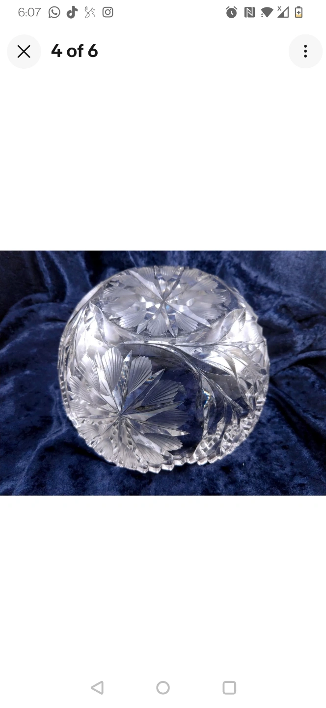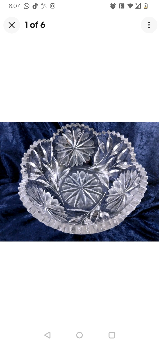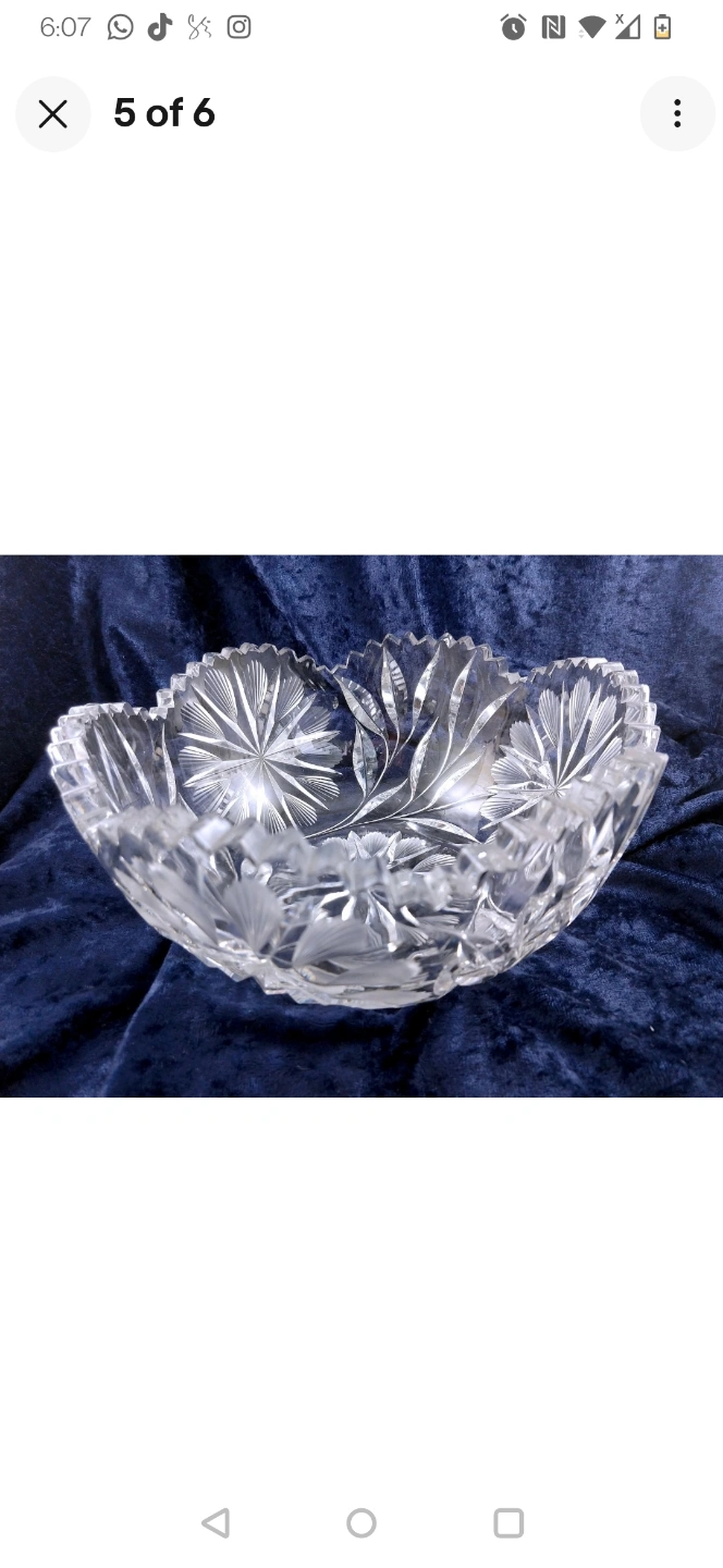 Antique Brilliant Cut Glass Bowl in Flower and Leaf Motif - 8"