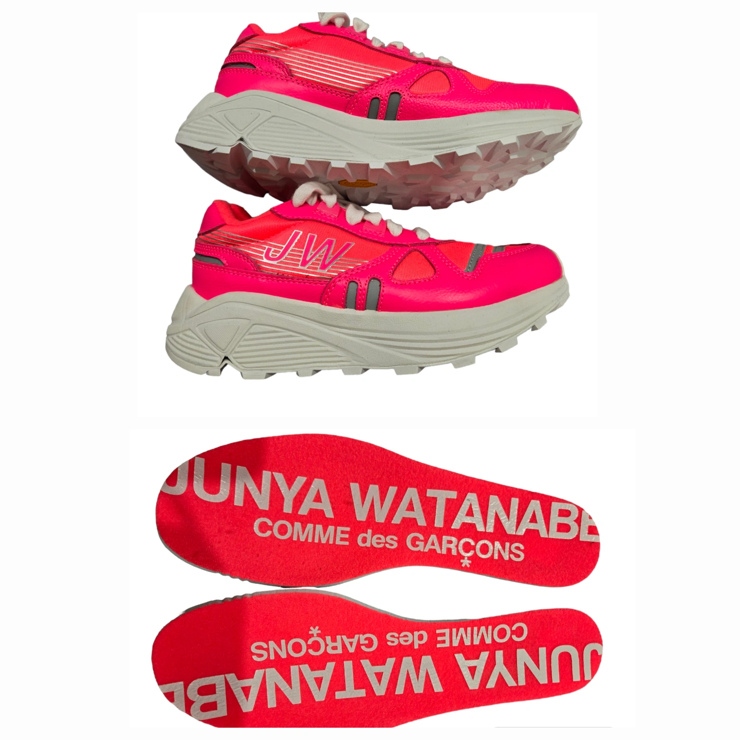 Junya Watanabe Comme Des Garcons x Hi-Tec Edition Synthetic Leather Sneakers Size: 6 Condition: BNWOT No box but the sneakers never been worn Description: These panelled sneakers are crafted from a combination of buffed faux leather and textile materials, showcasing a striking neon pink shadow effect. The round-toe design features a white lace-up closure and a padded tongue adorned with a logo patch. The padded collar ensures comfort, while the outer sides are embellished with logo appliques in pink. The heel tab displays an embossed logo, and the sneakers rest upon a treaded Vibram® rubber sole in white, featuring an embossed logo at the heel. This footwear is part of the exclusive Junya Watanabe x Hi-Tec collaboration. Supplier Color: Neon Pink Original retail price: $310 USD ($480 CAD at current exchange, including taxes) Pick Up : North York Finch Subway Station Or Near Downtown Subway Line or Near Queen East and Logan Update : If you are a Downtowner (especially in the Queen East area) and need or want to try on items to make sure they fit, arrangements can be made to meet at my storage unit. You can also have a look at my other unlisted designer items at the same time. Bundle 3 or more items to receive discounts. Discount prices will vary depending on the items you bundle.