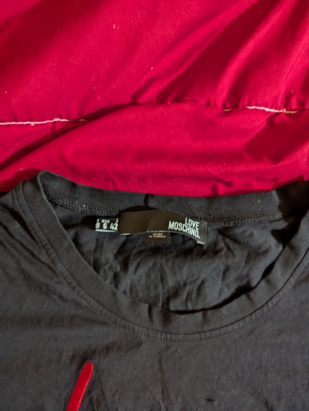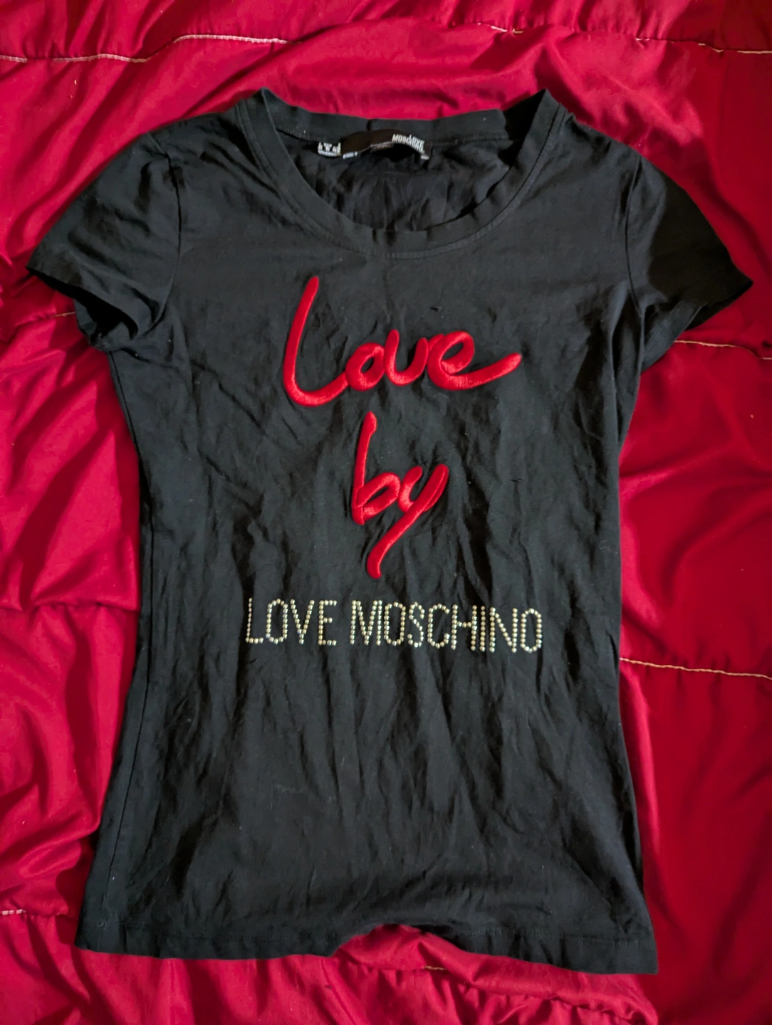 Black cotton t-shirt. Features red embroidered "Love by Love Moschino" on the front. Size small 6 final price or make an offer. open to trades