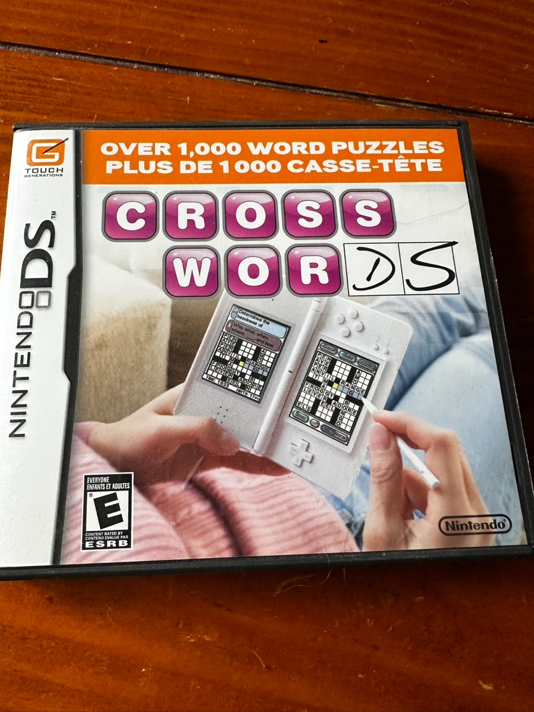 Two Nintendo DS games. Crosswords game features over 1000 puzzles. Brain Age 2 offers daily brain training. Both games include instruction booklets and are in their original cases. $15