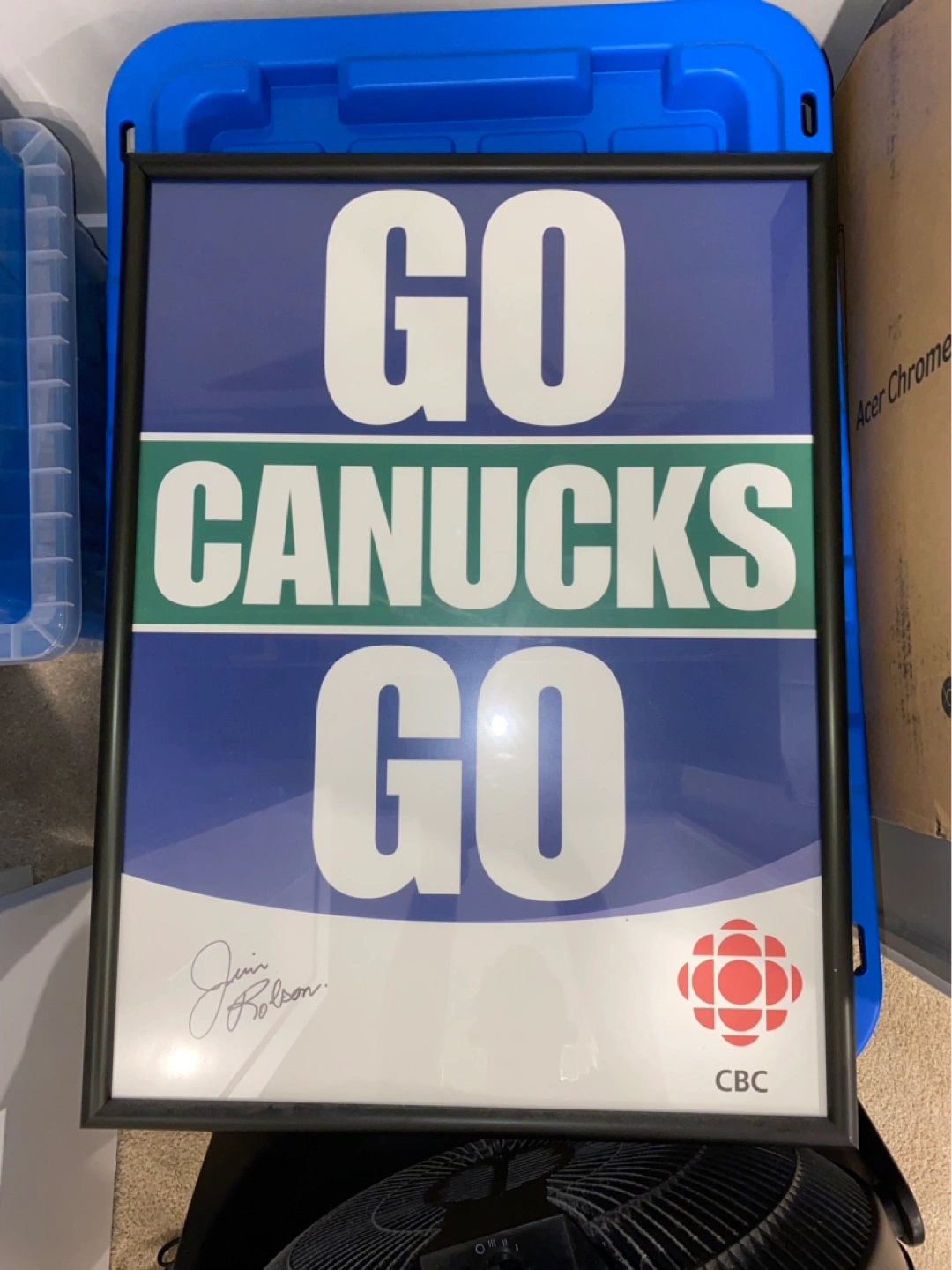 Legendary Canucks Broadcaster Jim Robson Signed Go Canucks Go CBC Poster 18” x 24”