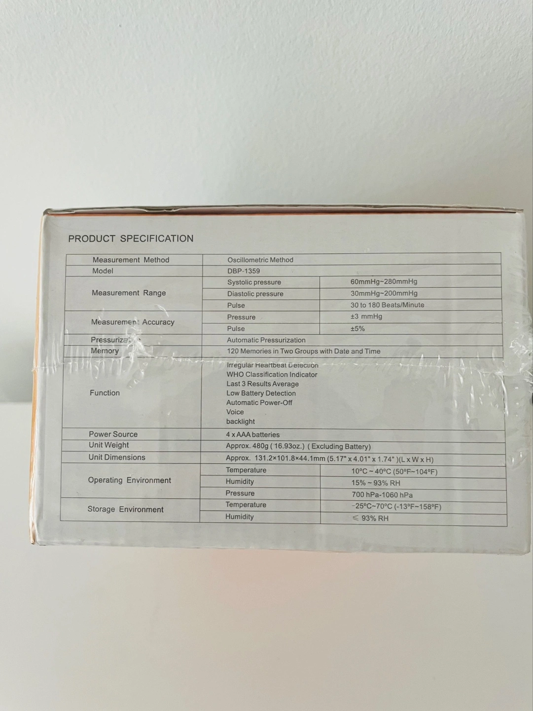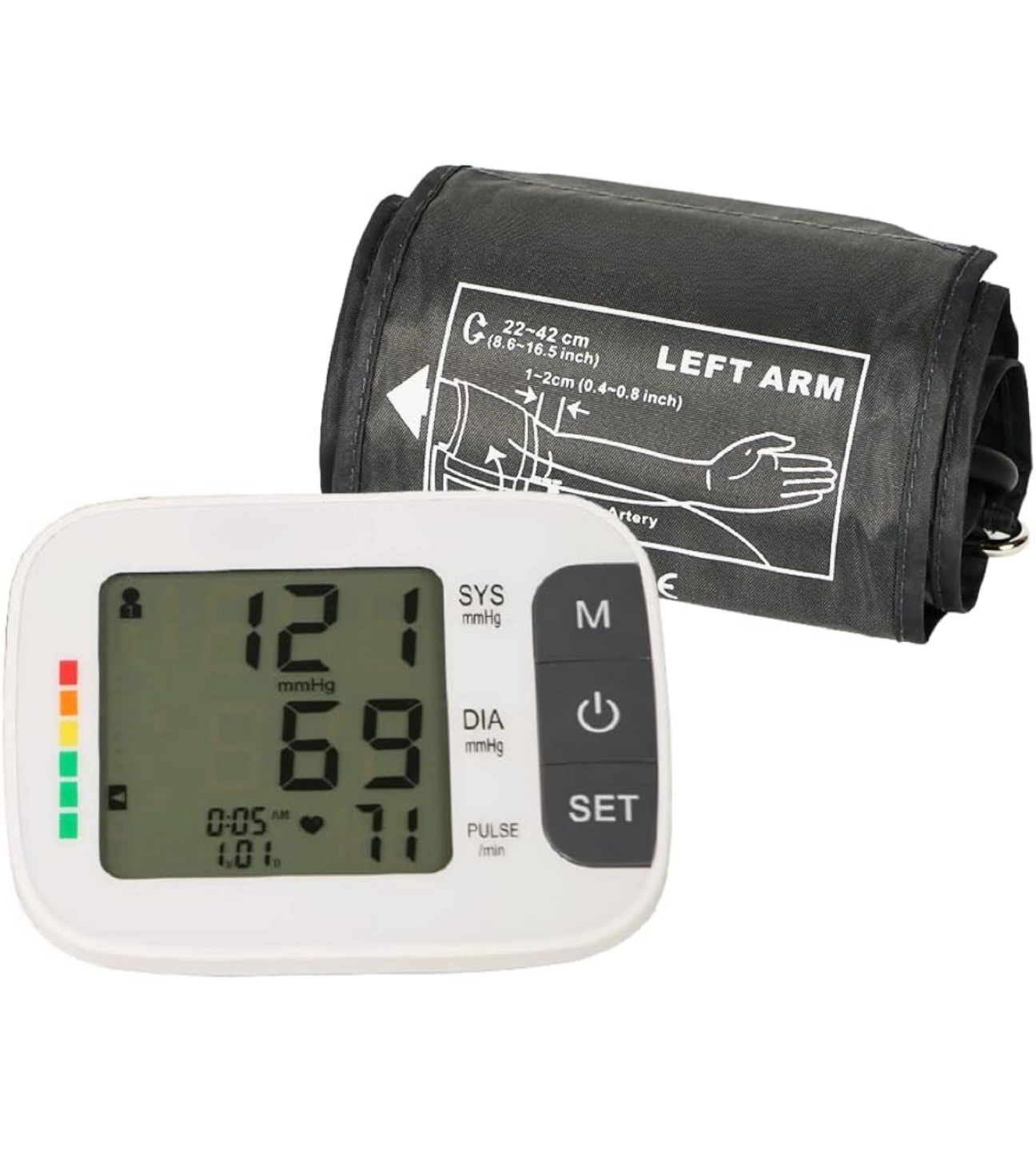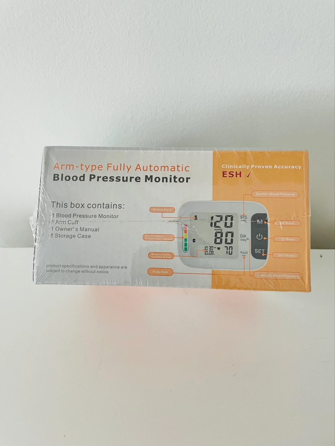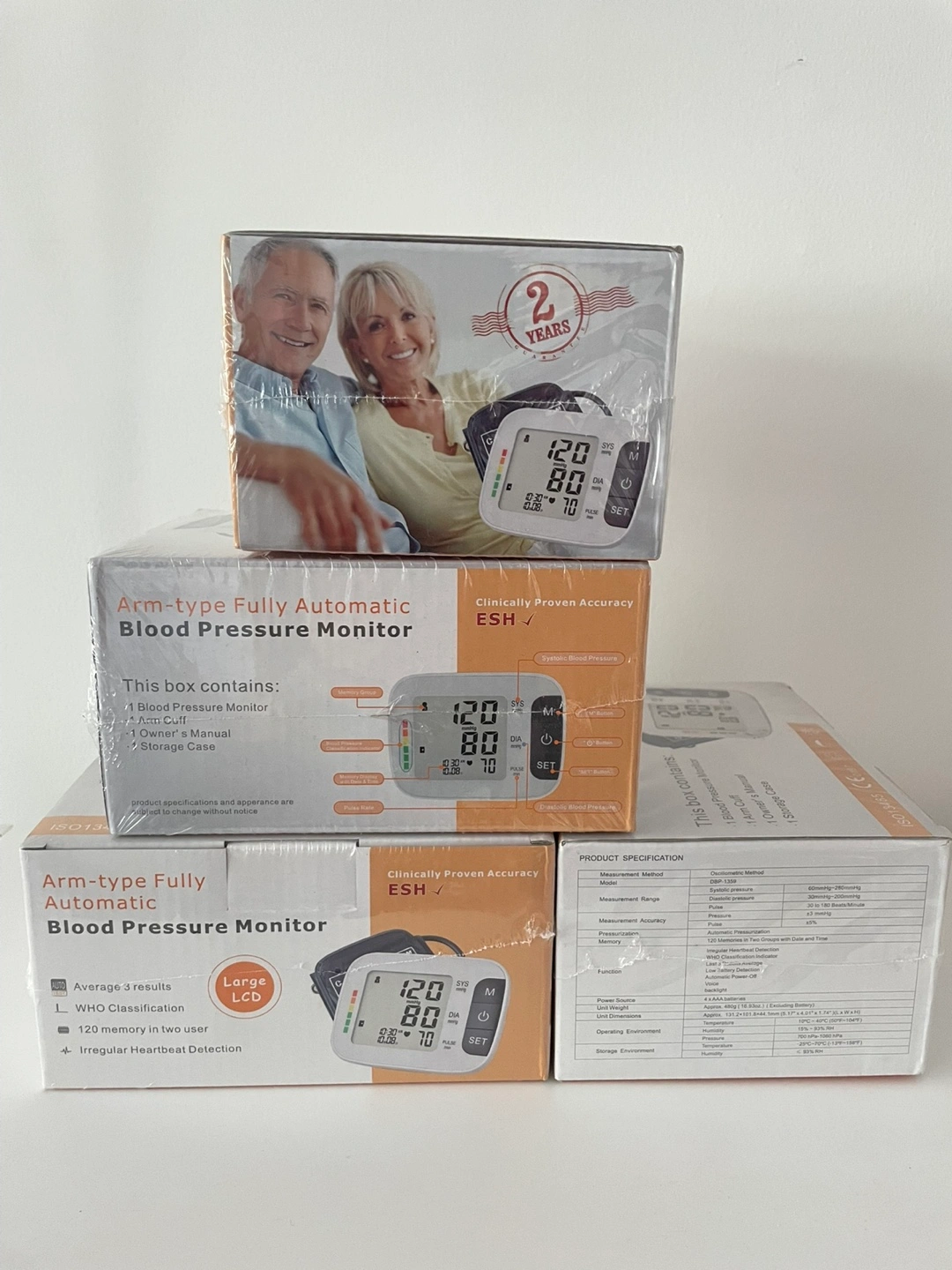 Automatic Blood Pressure Monitor for Home Use – Large LCD Display, 2-User Memory, Irregular Heartbeat Detection Key Features: Large Backlit LCD Display: 2.7" x 2.6" screen with oversized numbers for easy reading, even in low light. Dual-User Memory: Stores up to 120 readings (60 per user) and calculates the average of the last three readings. Wide Range Cuff: Fits arm sizes 8.5”–17” (22–42 cm) for a comfortable and accurate fit. One-Touch Fully Automatic Operation: Inflates and deflates gently for precise measurements. Irregular Heartbeat Indicator: Detects and alerts you to abnormal heart rhythms. Specifications: Measurement Range: Systolic (60-260mmHg), Diastolic (30-200mmHg), Pulse (30-180 bpm) Power Source: 4 AAA batteries or an AC adapter (included) Package Includes: Blood pressure monitor, arm cuff, user manual, storage case *Pickup Locations: Near Markham Road & 14th Avenue, Markham, or at 330 Esna Park Dr, Markham. *Shipping: Available for an additional fee. *Thank you for your interest in these items. Please also have a look at my other items on sale.
