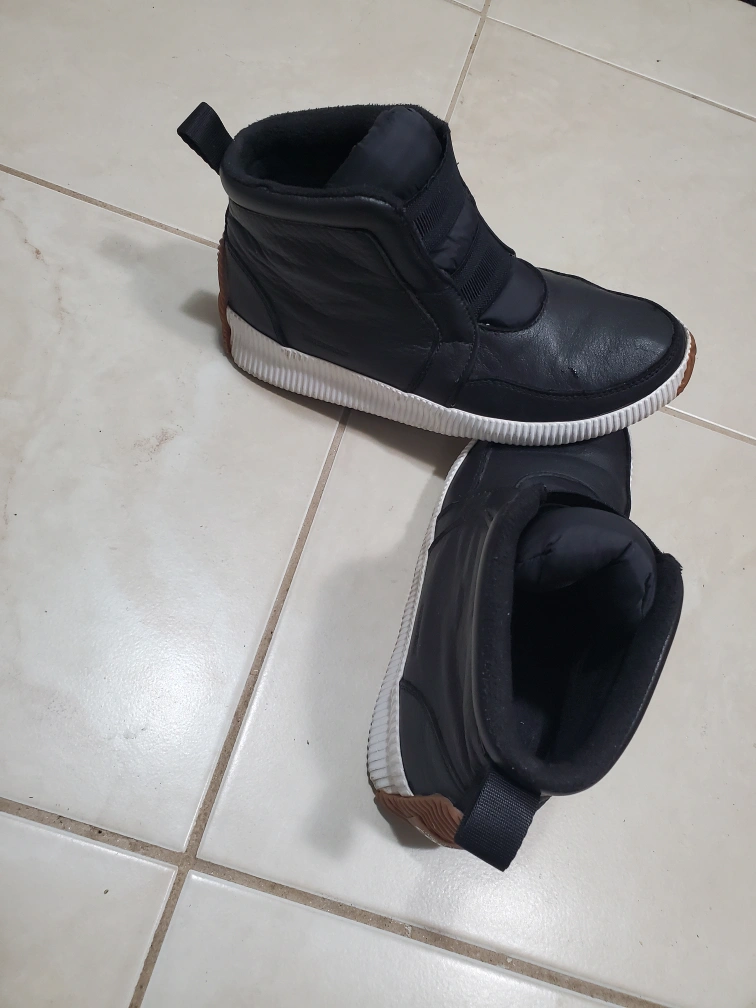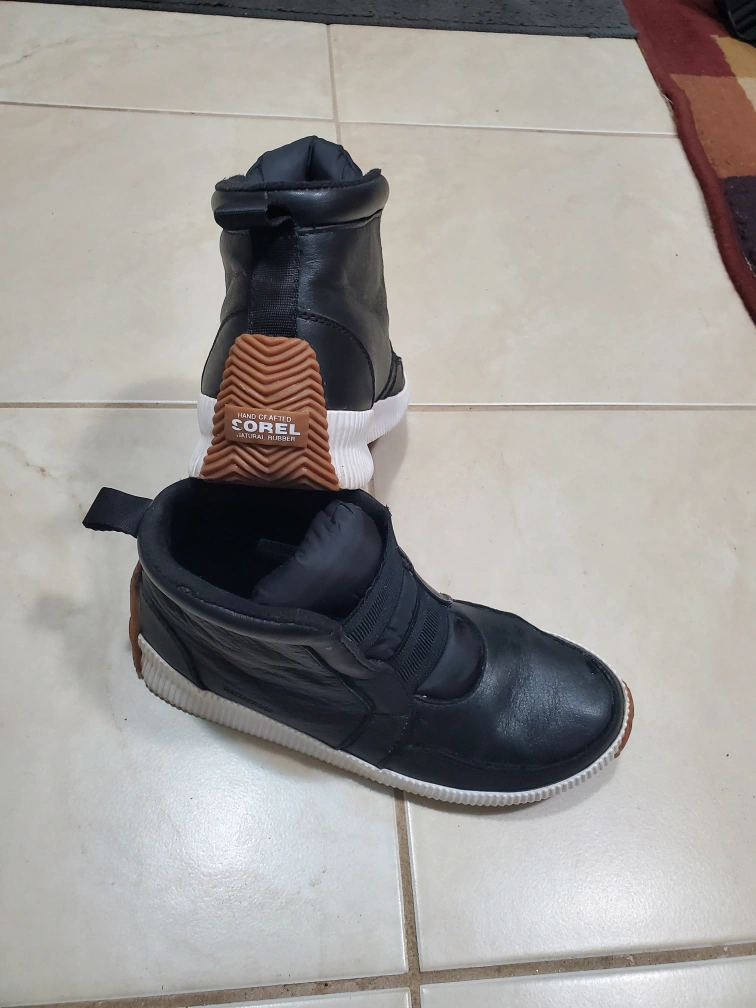 β Size 7 * Waterproof * Thick, padded tongue with 2 wide elastic strips across β(Small worn area on each shoe at heel underneath, shown in pic #5)