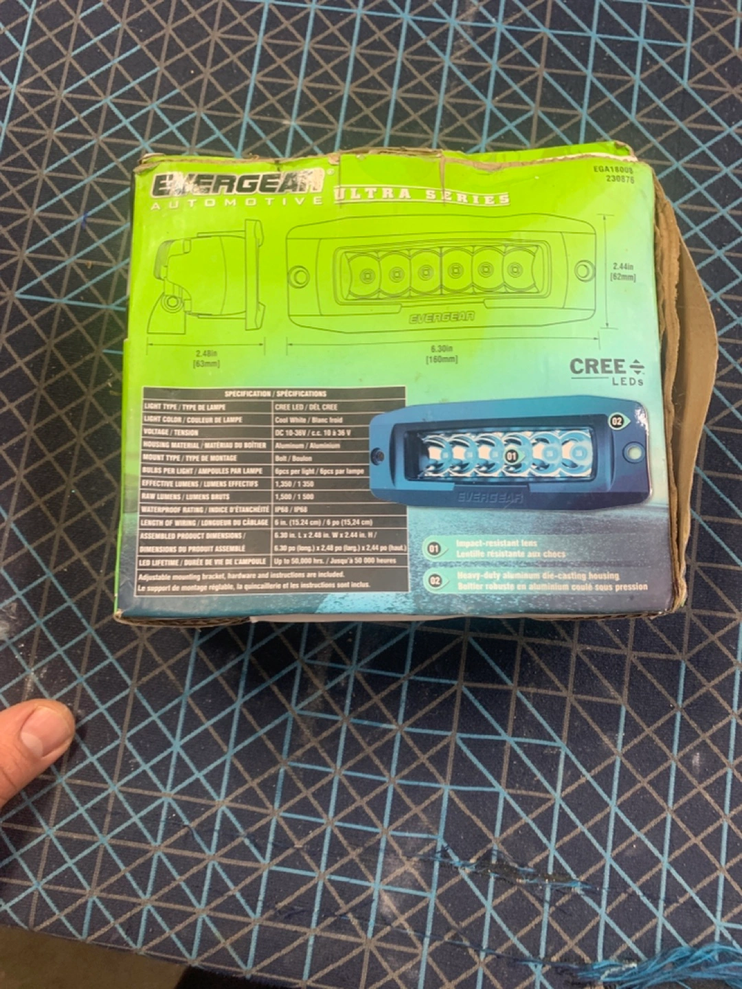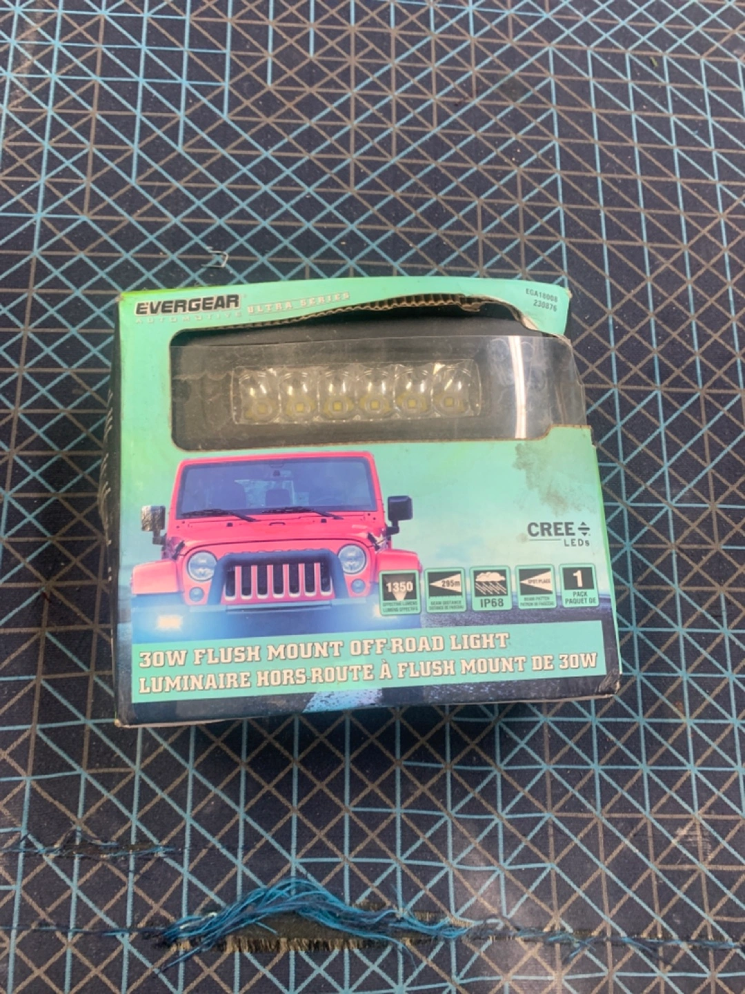 New in box Evergear Ultra Series 30W flush mount off-road light. Cree LEDs. Features an IP68 waterproof rating. Includes mounting hardware.