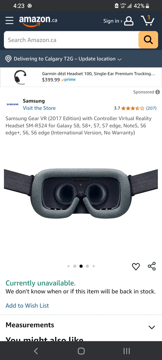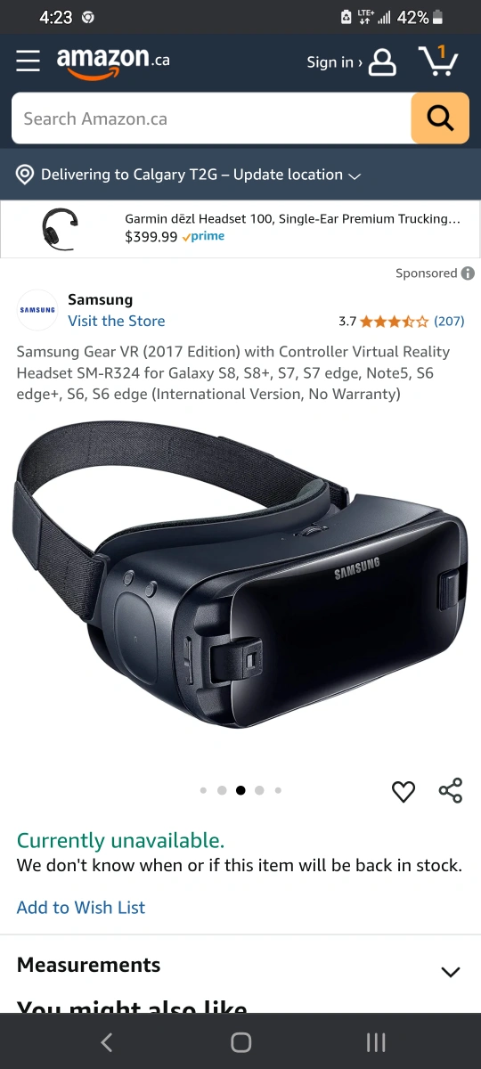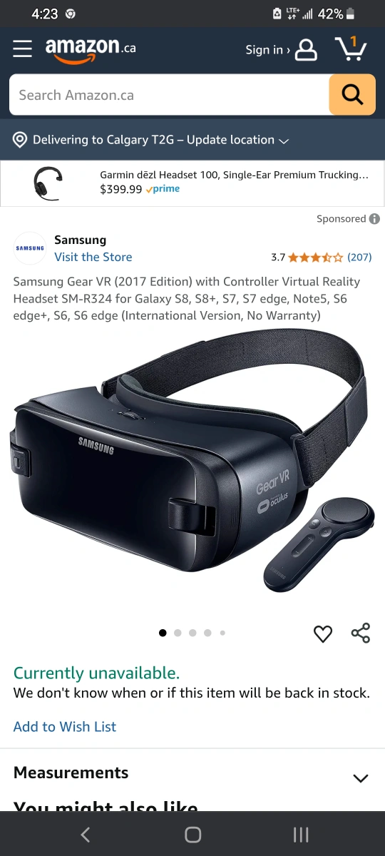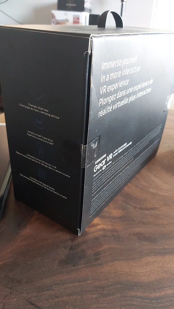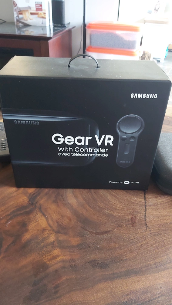 New, in box. Gear VR headset and controller. Cinematic wide viewing experience. Compatible with select Samsung Galaxy phones. Model SM-R324NZAAXAC.