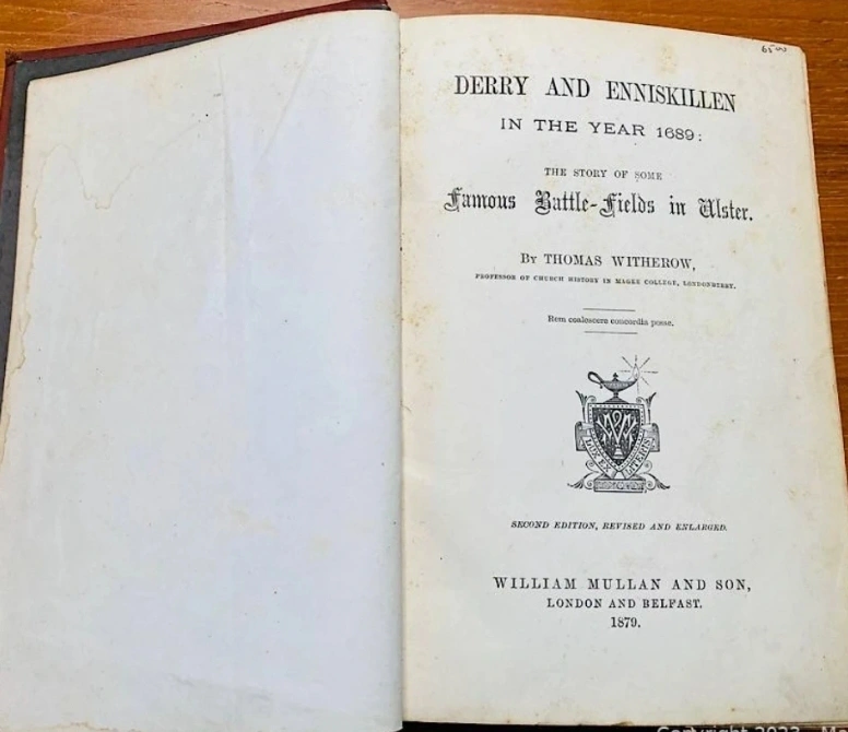 Beautiful Antique Book,Derry and Enniskillen in year 1688 - 9 Derry and Enniskillen in the year 1688 - 9. The Story of Some Famous Battlefields In Ulster. [Ireland Originally published: 1873 Subject: Derry (Northern Ireland) -- History -- Siege, 1688-1689, Enniskillen (Northern Ireland), Ireland -- History -- War of 1689-1691, Londonderry (Northern Ireland) -- History -- Siege, 1688-1689, Protestants -- Ireland, Ulster (Northern Ireland and Ireland), Ulster (Northern Ireland and Ireland) -- History, Enniskillen (Ireland), Ireland -- History -- War of 1689-1691 -- 1603-1691, Londonderry, Ireland -- Siege of 1689 This is a red Hardcover in Pretty darn good Condition other than what is shown in the Photo. 2nd Edition It is signed inside page and dated 1879 Asking $160.00 now Reduced and Firm $100.00 Willing to Ship at Buyers Expense Accepting Cash or Etransfer Only Please Pickup Clarkson Area Mississauga Via Enclosed Porch for Easy Viewing