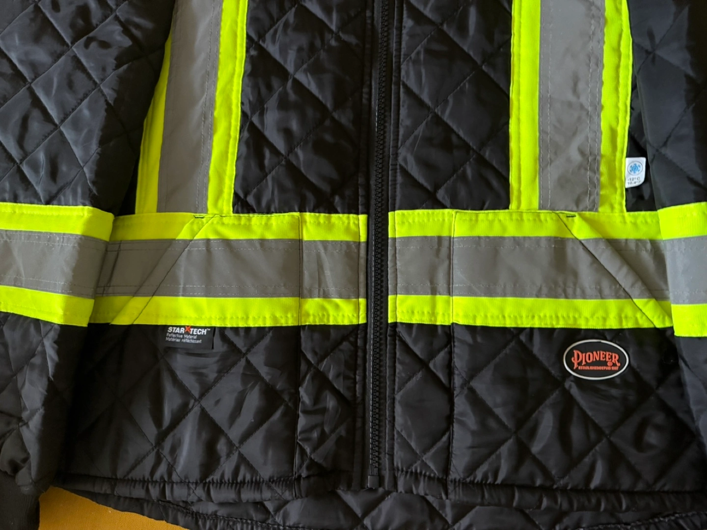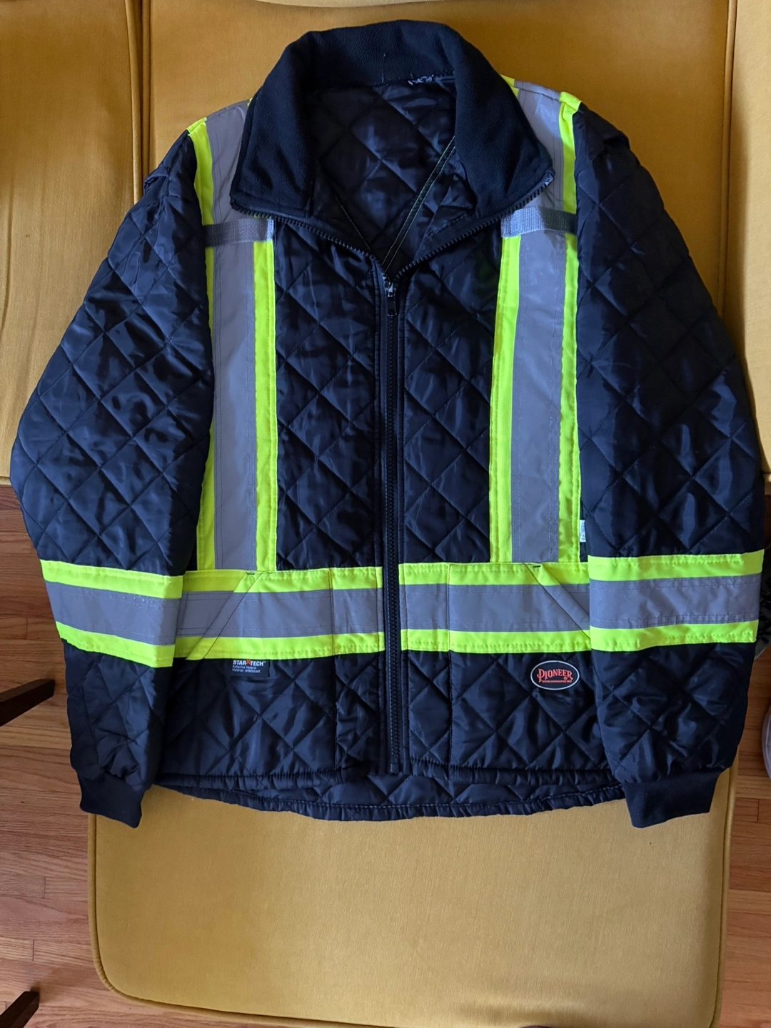 Pioneer High Visibility Reflective Insulated Freezer Jacket - Hi Vis Men’s Work Jacket - Quilted - Class 1 – Black Black quilted jacket. Features reflective safety tape. Good for cold weather. Men's size XL. StarTech lining. Pick up in Downtown. Please check out more of my items and get a good deal.