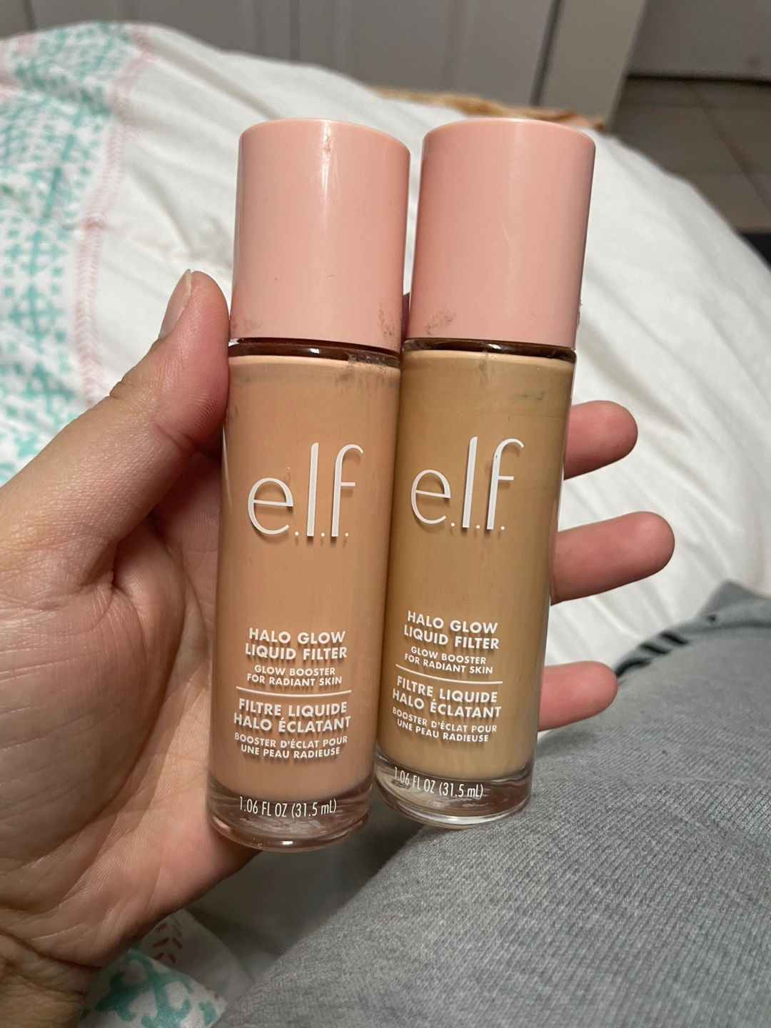 Two bottles of e.l.f. Halo Glow Liquid Filter foundation. Shades 1 and 2. Glow booster for radiant skin. 1.06 fl oz (31.5 mL) each. $20 both