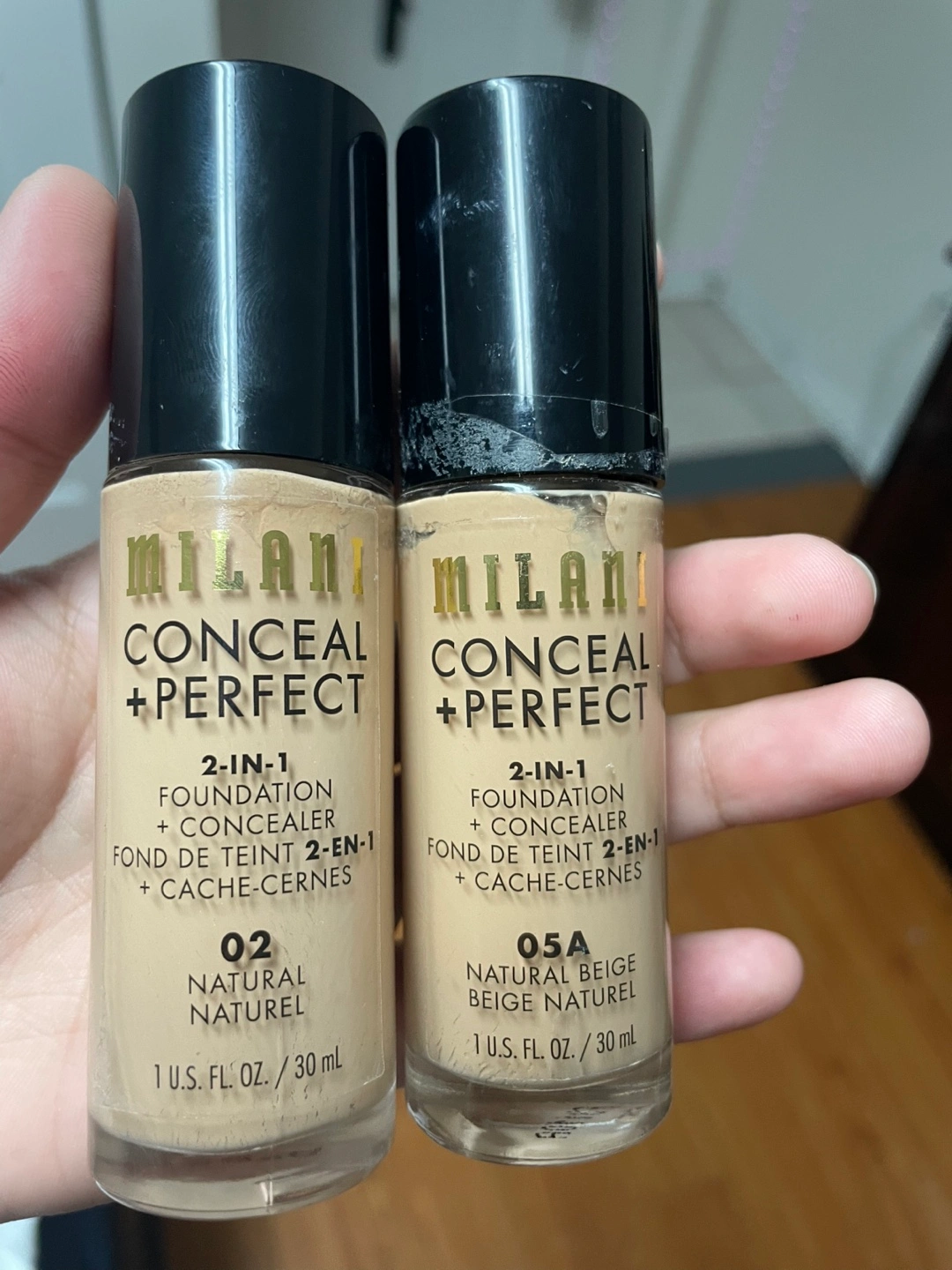 Two Milani Conceal + Perfect 2-in-1 foundation and concealer. Shades 02 Natural and 05A Natural Beige. 30ml each. $20 both