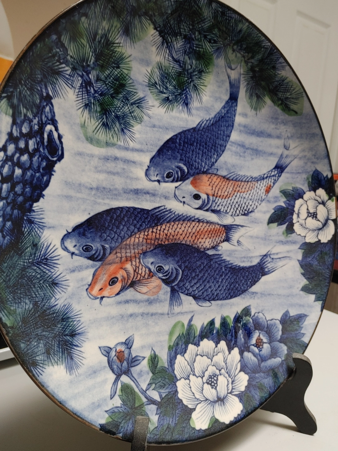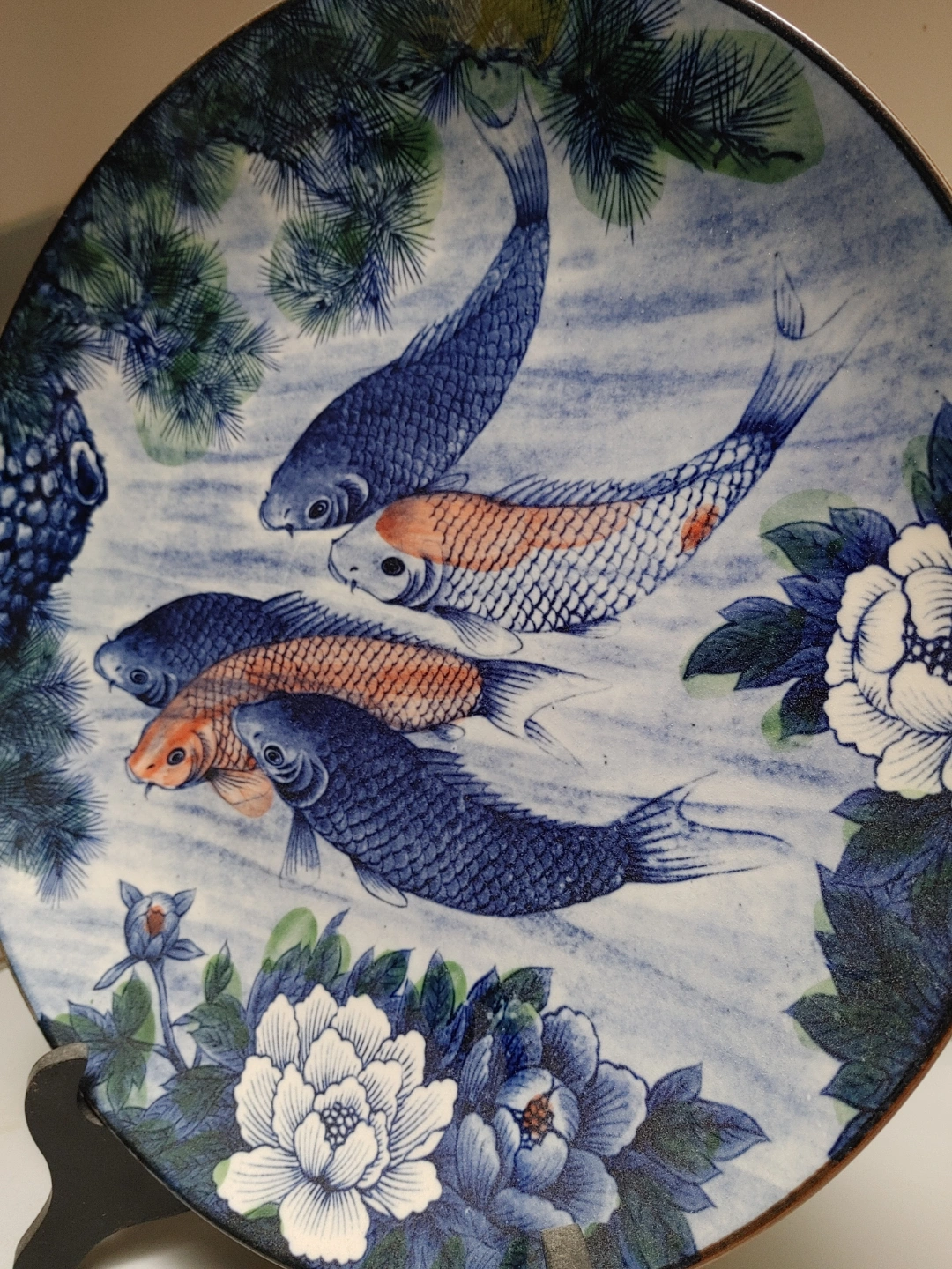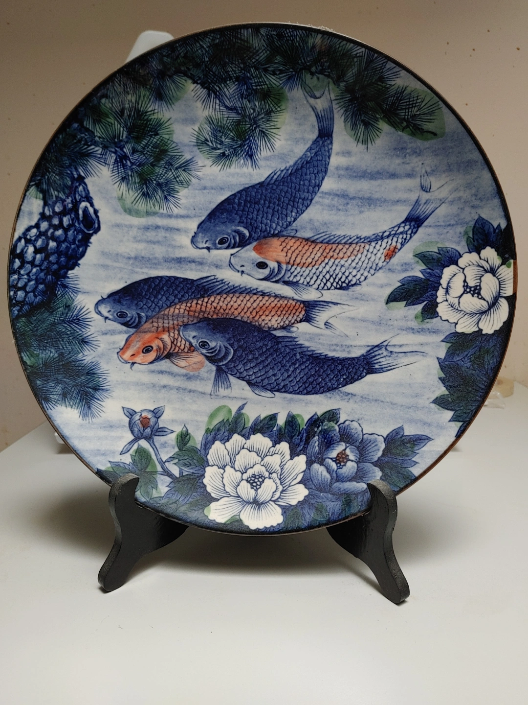 🐟JAPANESE MADE PLATE 🐟DIAMETER OF 14.25 INCHES 🐟KOJI FISH SWIMMING 🐟I AM LOCATED IN THE YONGE AND STEELES AREA FOR PICK UP