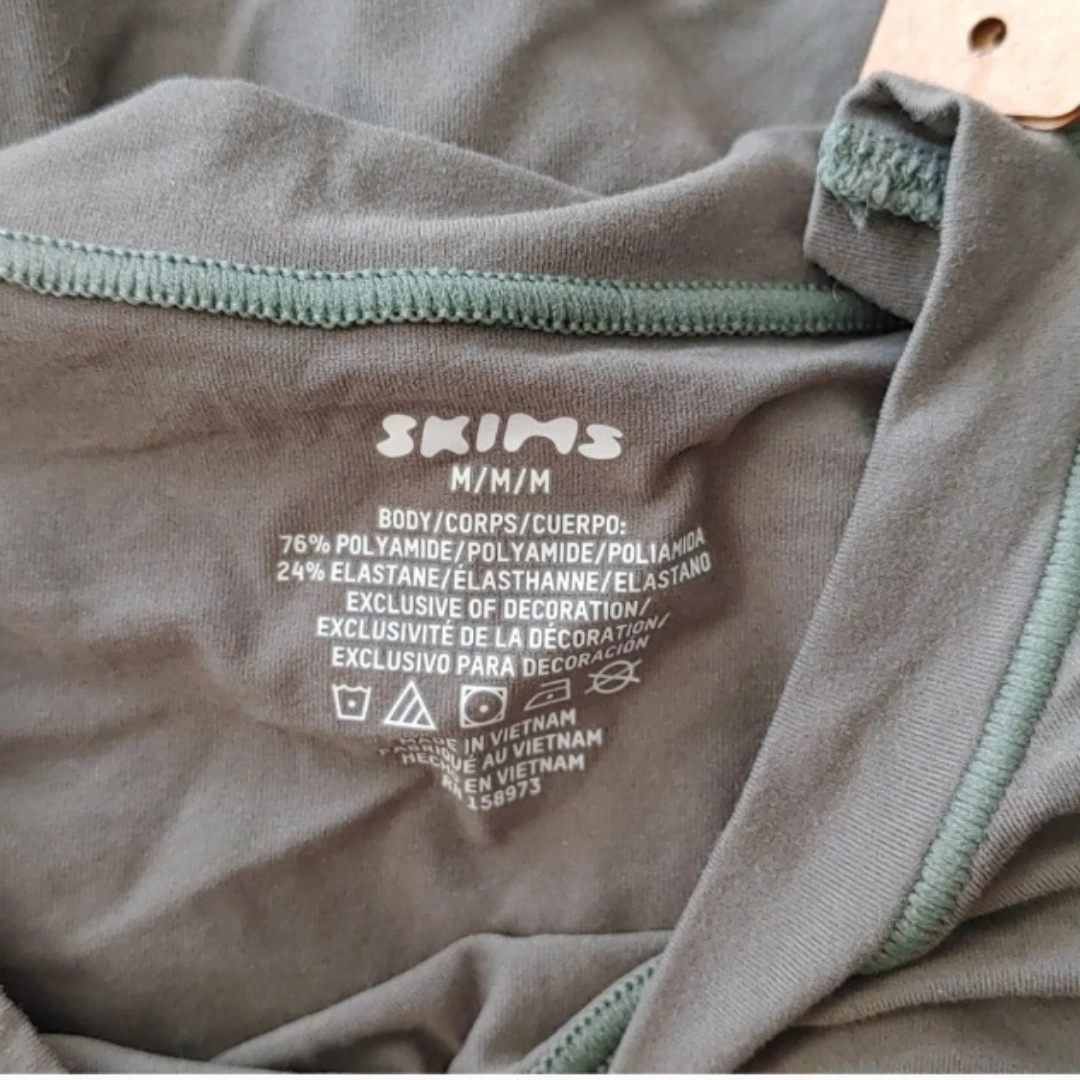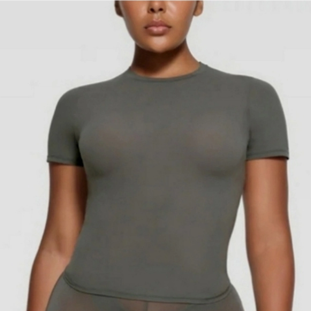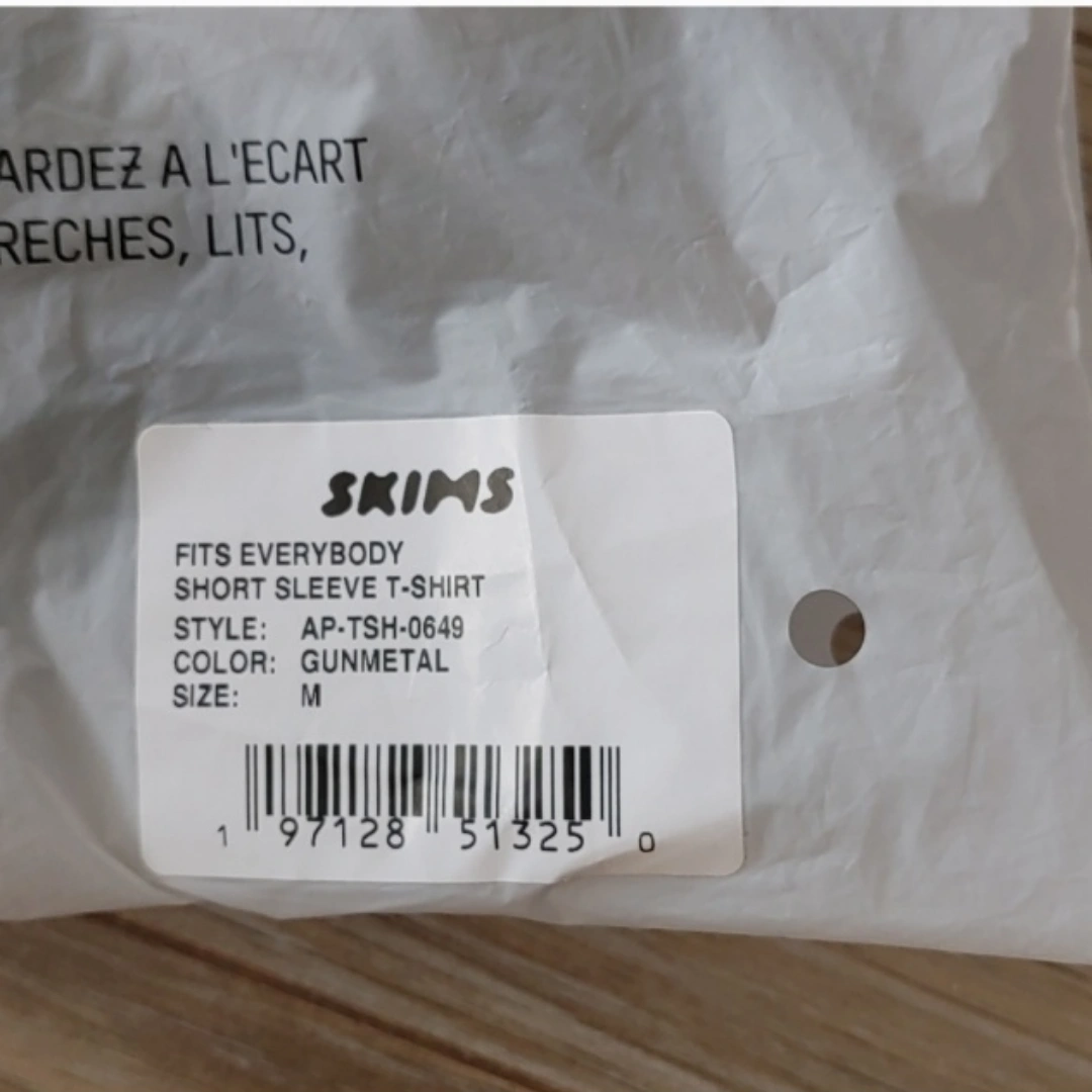 Skims Fits Everybody Short Sleeve T-Shirt. Available sizes: 1 Size Medium 1 Size Small (Let me know which size you need) Colour: Gunmetal We perfected the t-shirt. Made with our signature buttery-soft fabric with incredible stretch and a second-skin feel, this versatile tee molds to your body for the most flattering fit whether you’re dressing it up or down. Features a classic crew neck and short sleeves. Fits true to size. Message with any questions.