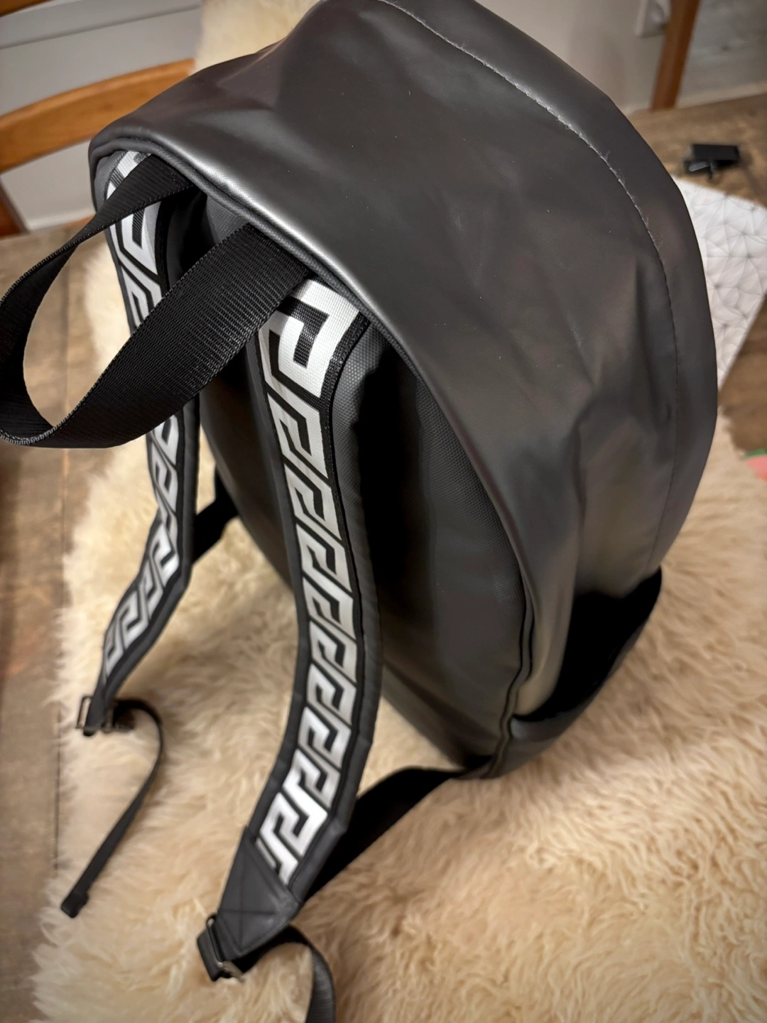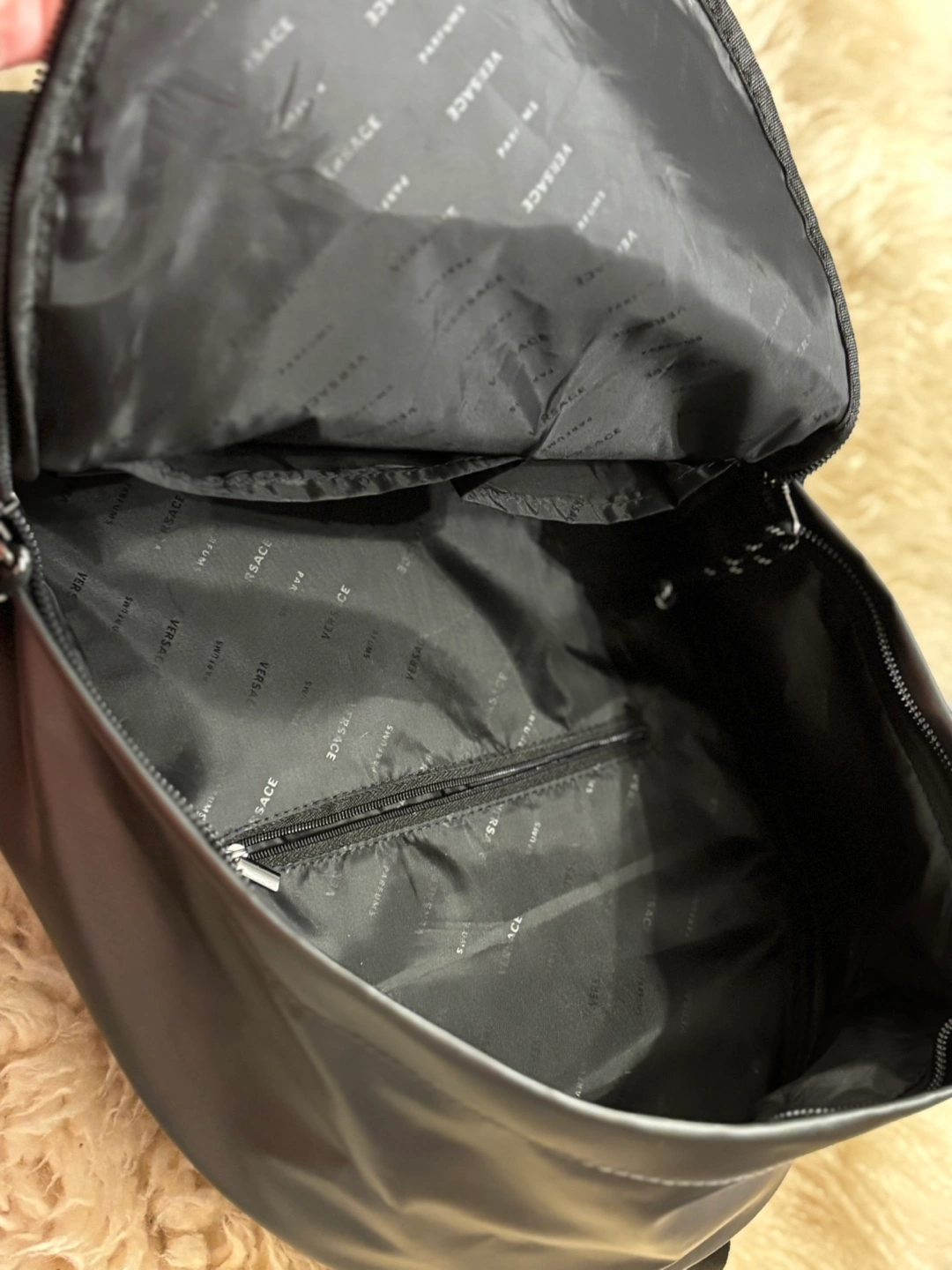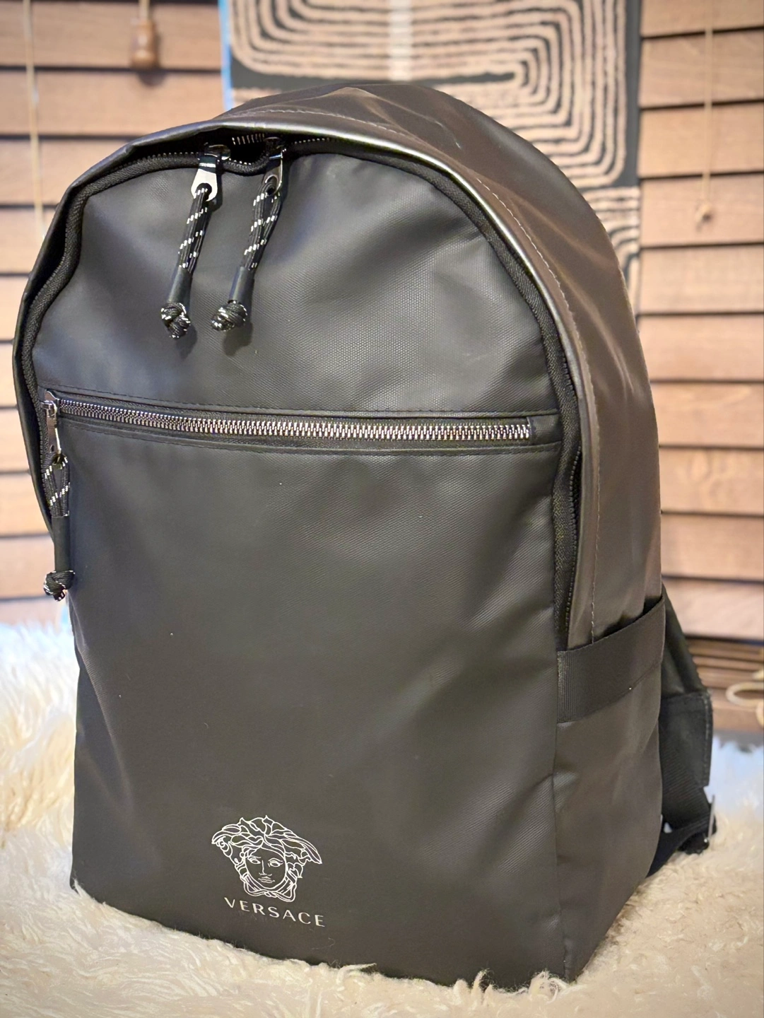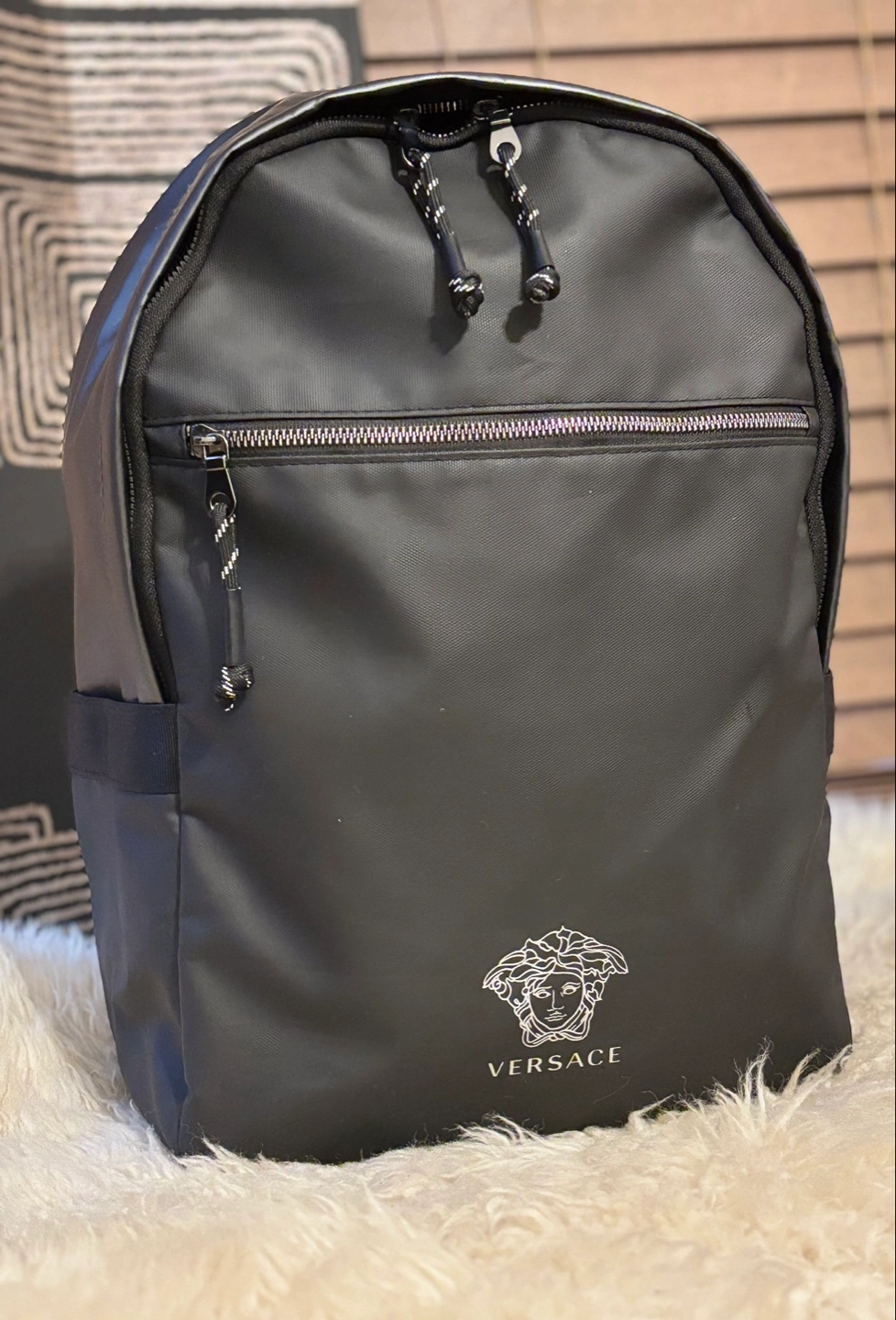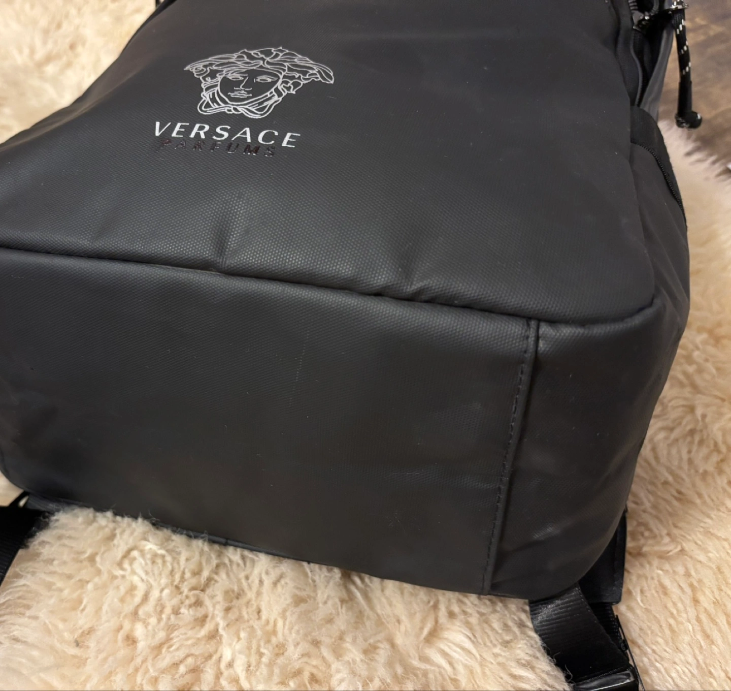 Versace 'parfumes' back pack bag It's authentic never used clean matte metallic charcoal colour 2 compartments inside plus zipper pocket 1 zipper outer pocket 2 side pockets Light weight and water resistant $75 Great for outings weekend trips and travel