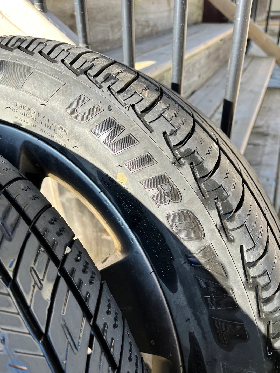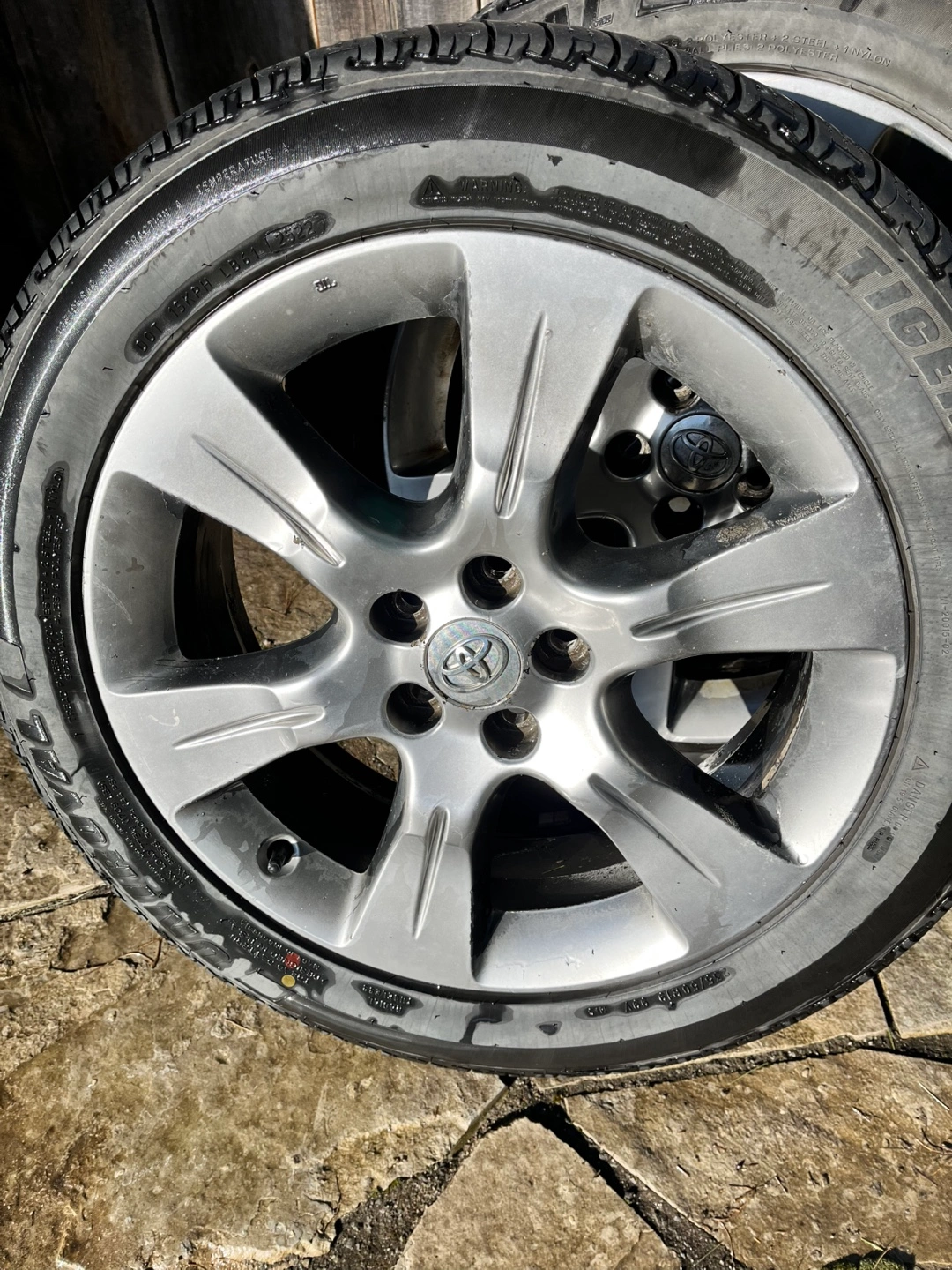 235/50 R19 99V Uniroyal TigerPaw Touring A/S Tires Set of four with Toyota alloy rims. Good condition with more than 50% + life left, Used, but still have plenty of tread remaining. Perfect for your Toyota Sienna SE models 2011-2020