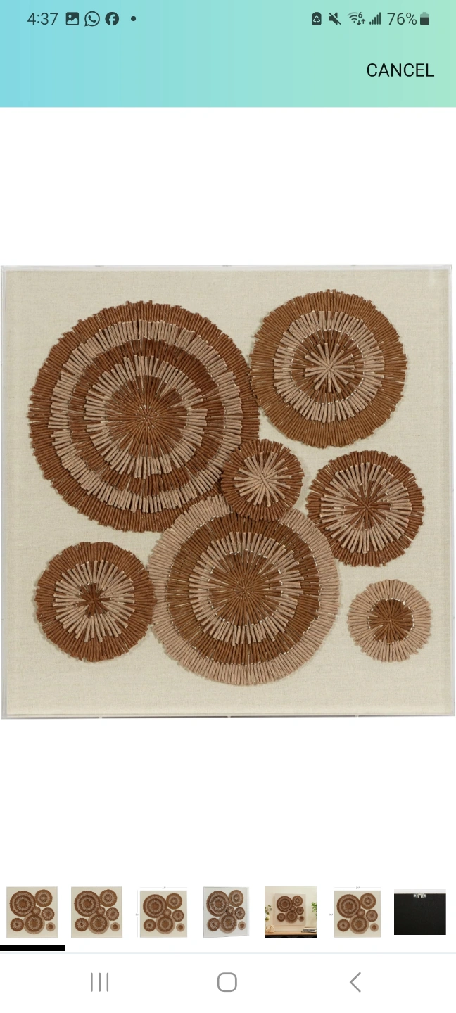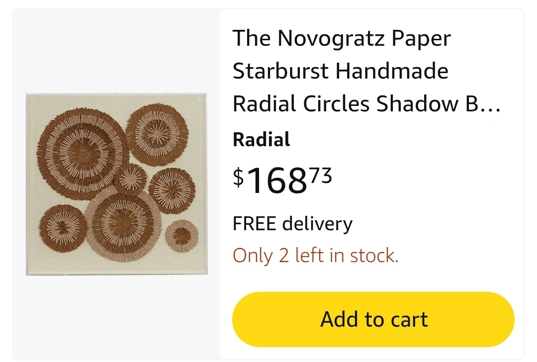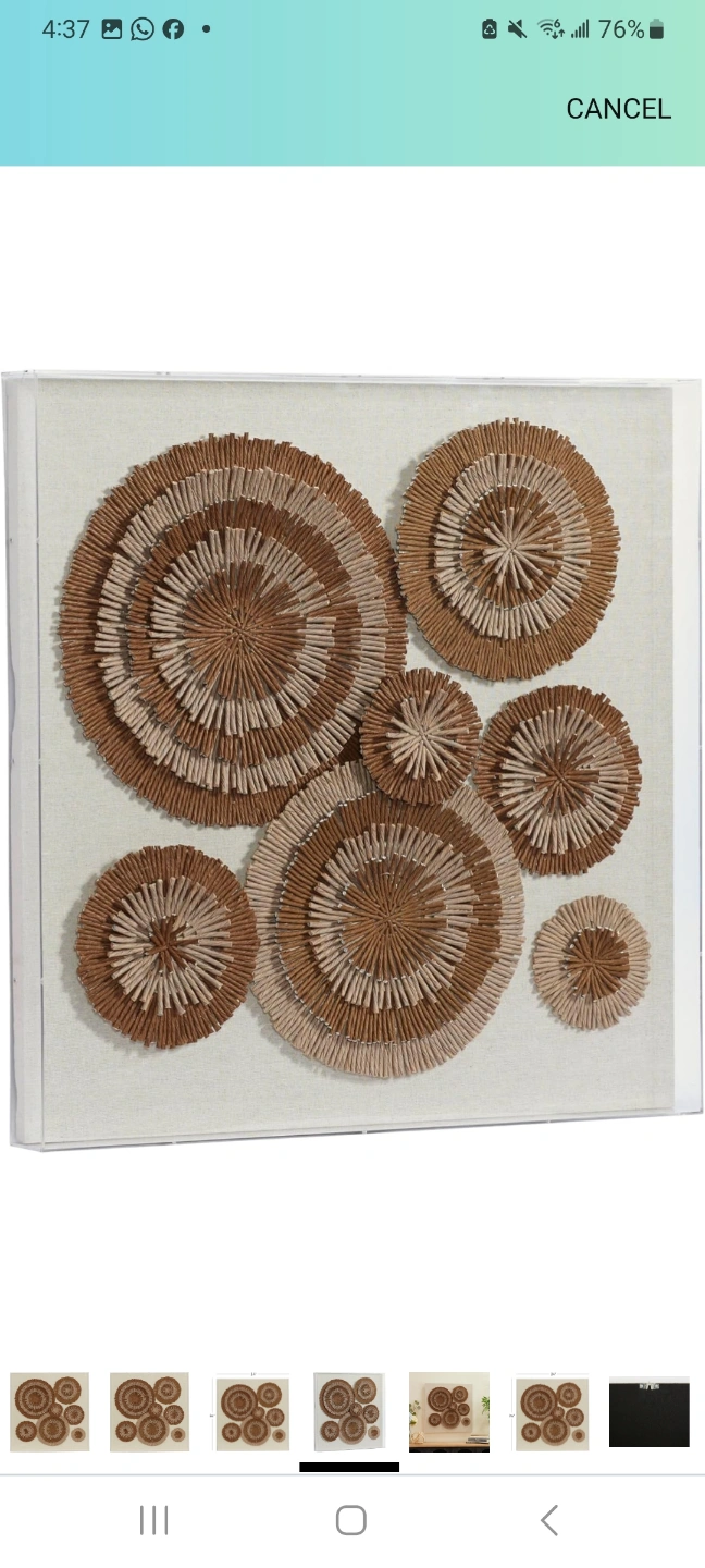 Eye-catching 3D wall art. Rolled paper and acrylic design. Radial pattern on white background. Neutral colours. Adds updated aesthetic to any home.