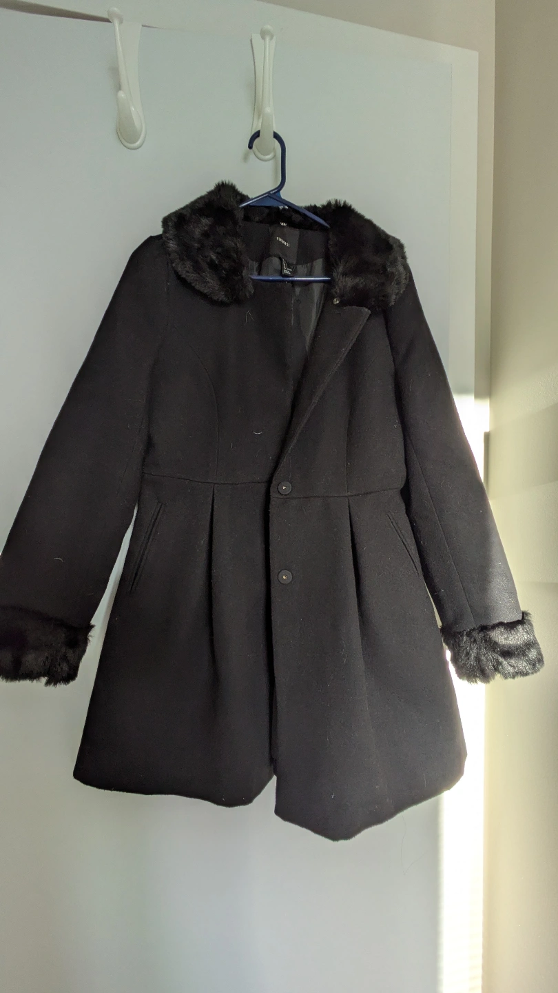 Of you're petite, this will fit you as a small size. Features a faux fur collar (removable) and cuffs. A-line silhouette. Button closure. 📍Pick up/Meet up: Marine Drive Station in front of T&T supermarket OR Vancouver Pacific Centre in front of Garage retail store. 💵 cash only