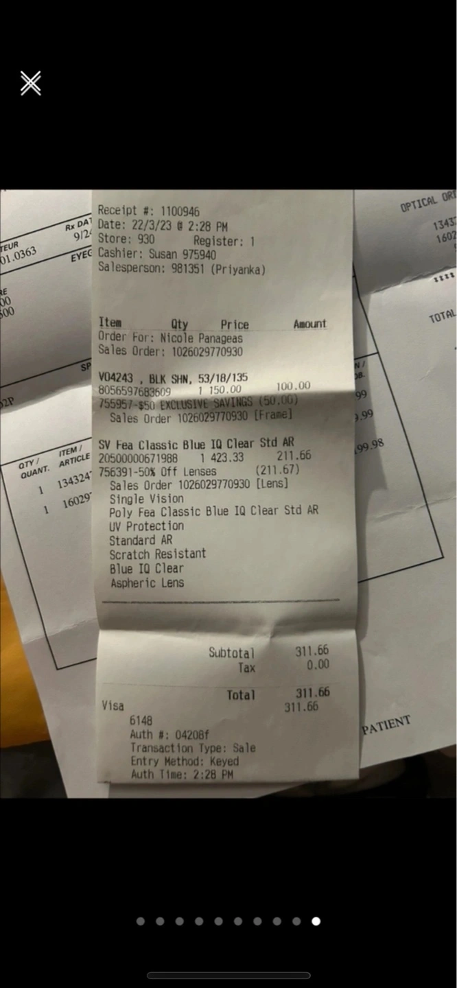 Prescription - check the receipt for details Lightweight black frame. Cat eye shape. Clear lenses. Great for everyday wear.