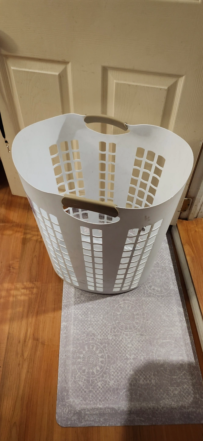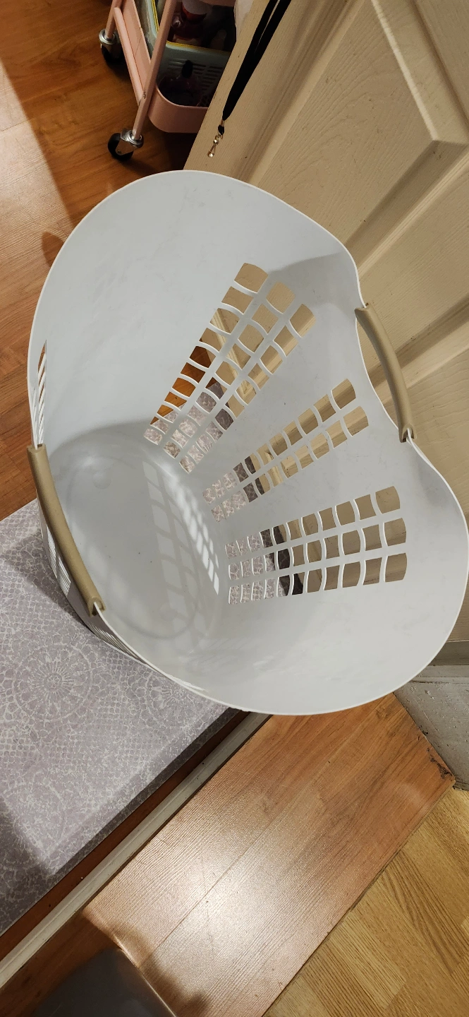 Excellent condition. Large capacity laundry basket. White plastic construction. Beige coloured handles. Great for carrying laundry. price only cash only pickup no delivery. Meet up on O'Connor drive outside TD Canada Trust bank door.
